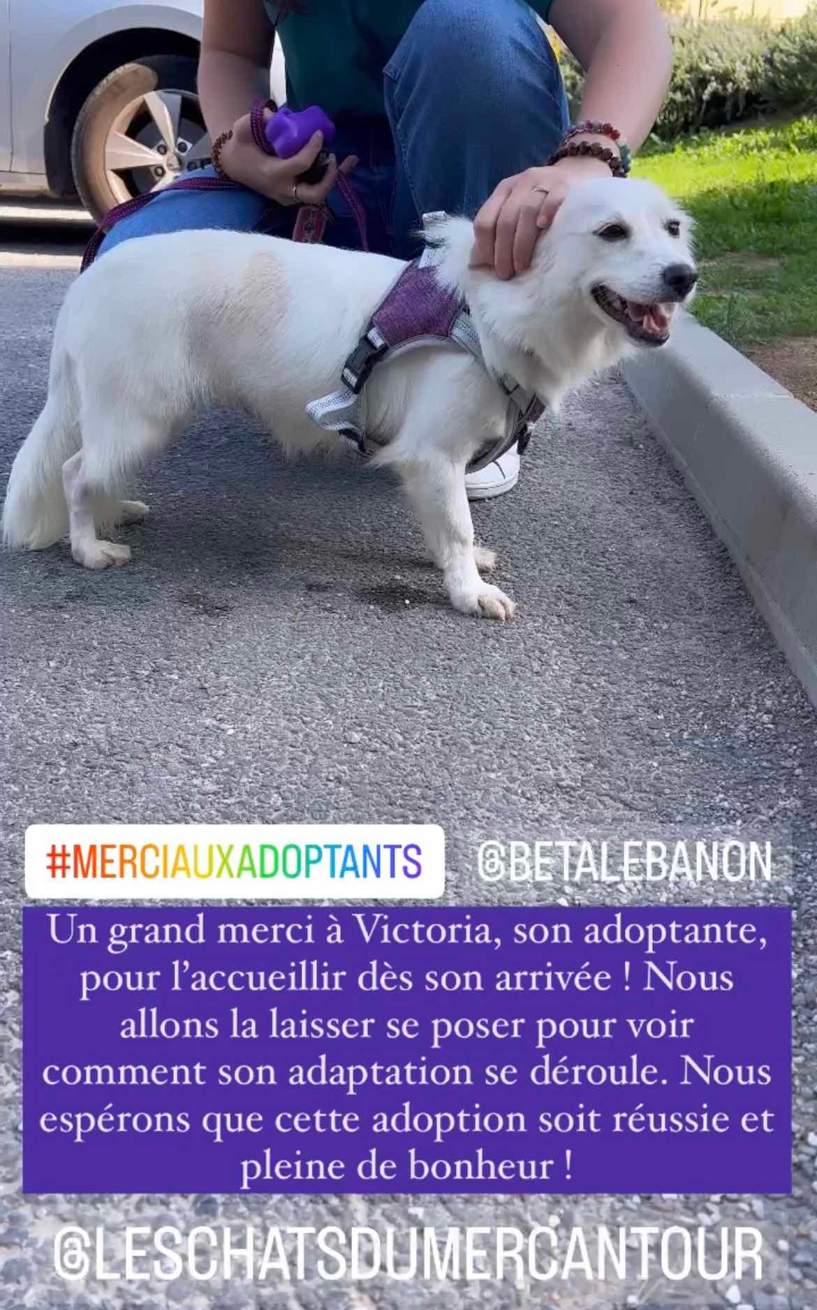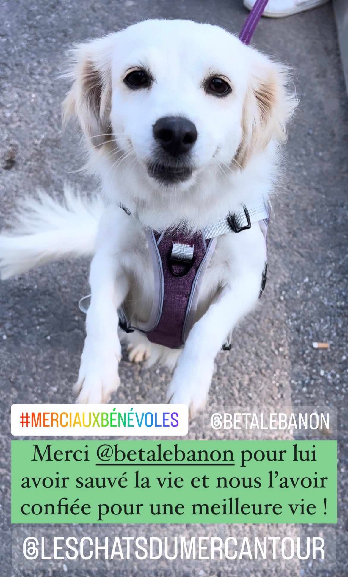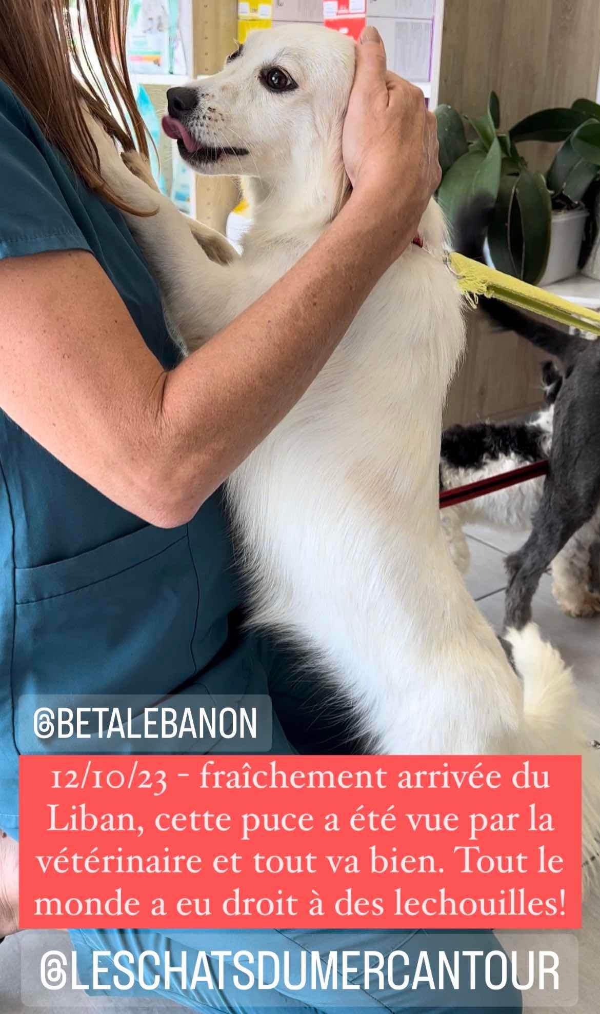 Recueillie et prise en charge par l’association Refuge de BETA LEABANON, elle y restera jusqu’à son adoption.