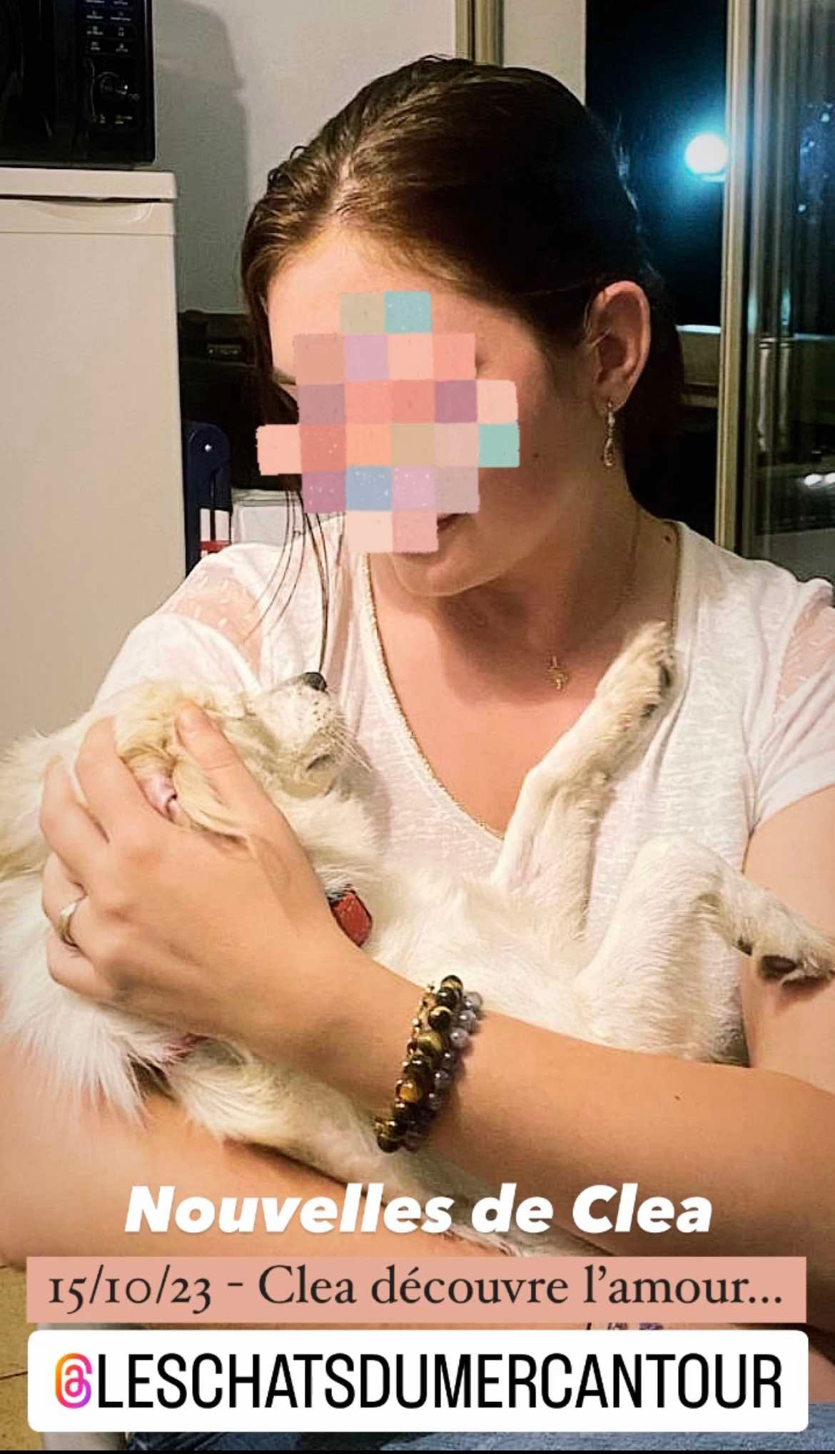 CLEA est une chienne de type croisée bichon, non lof, couleur blanche.