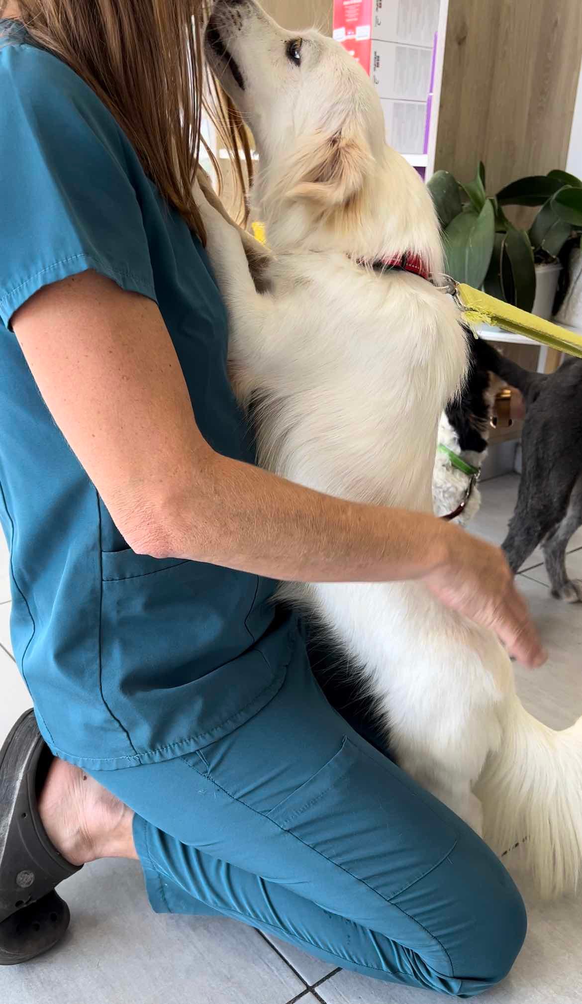 Au refuge, elle s’entend avec tous les humains, tous les chiens et les chats.