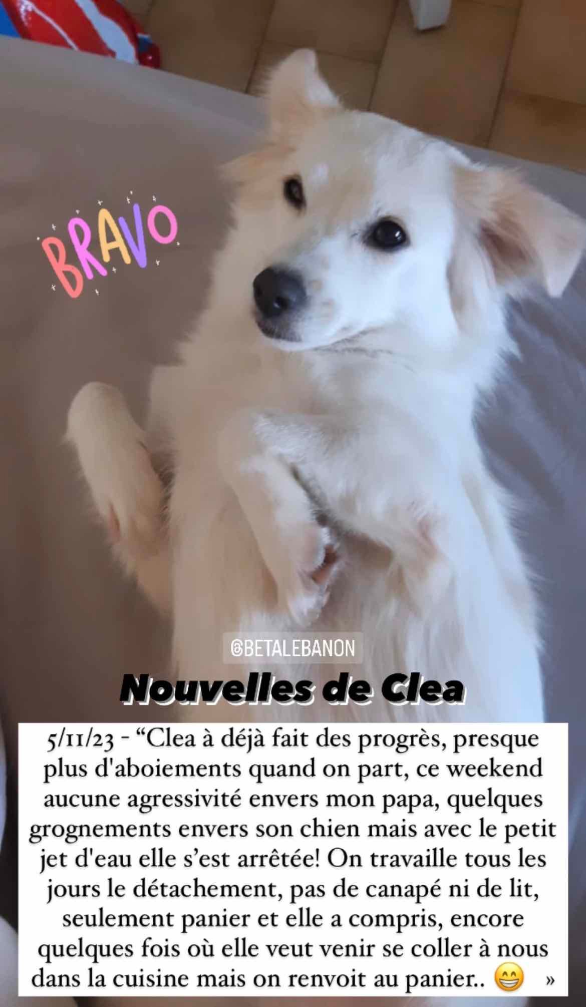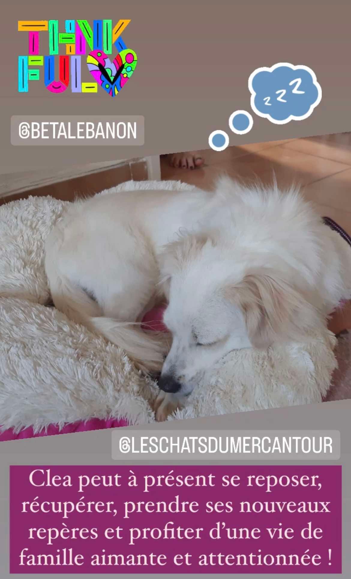 CLEA a été jetée et abandonnée dans la rue, avec 4 autres petits chiens (dont 3 déjà adoptés en France), dans un quartier de Beyrouth au Liban.