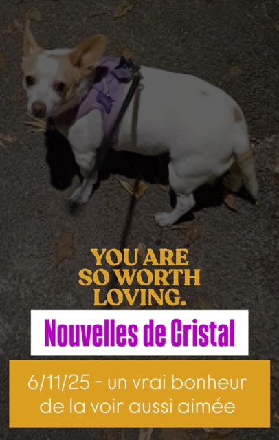 C’est un amour de petite chienne, il n’y a rien à dire à part qu’elle mérite une famille aussi formidable qu’elle !
