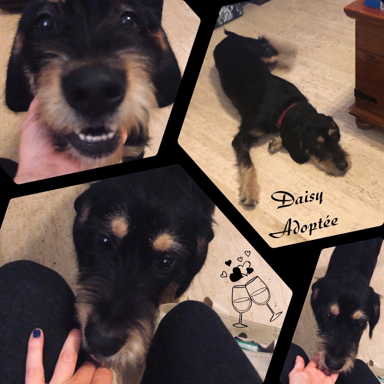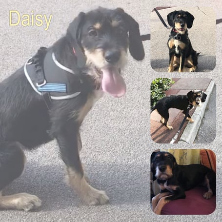 DAISY est une chienne de type croisée Griffon ( nous ne connaissons pas ses parents), non lof, couleur noire et feu. Femelle stérilisée, vaccinée (rage y compris) et pucée 250268600191197, traitée pour les parasites internes et externes.