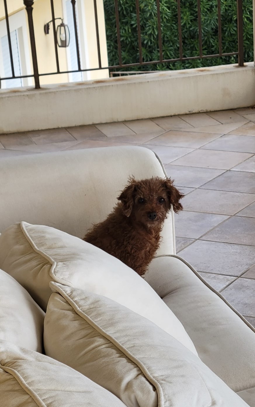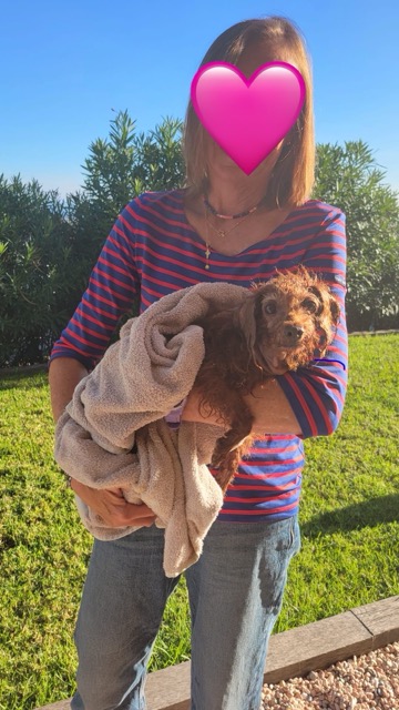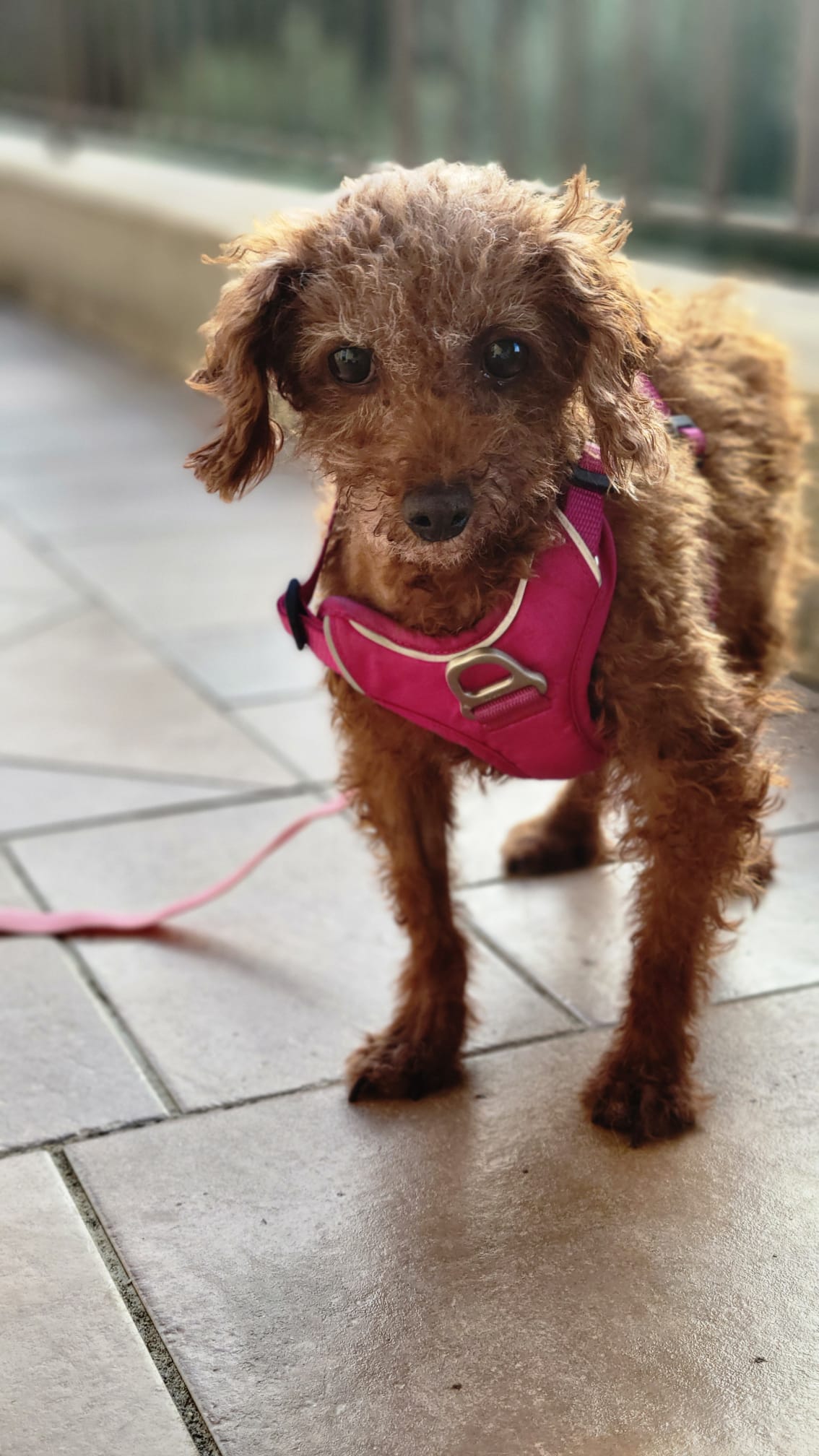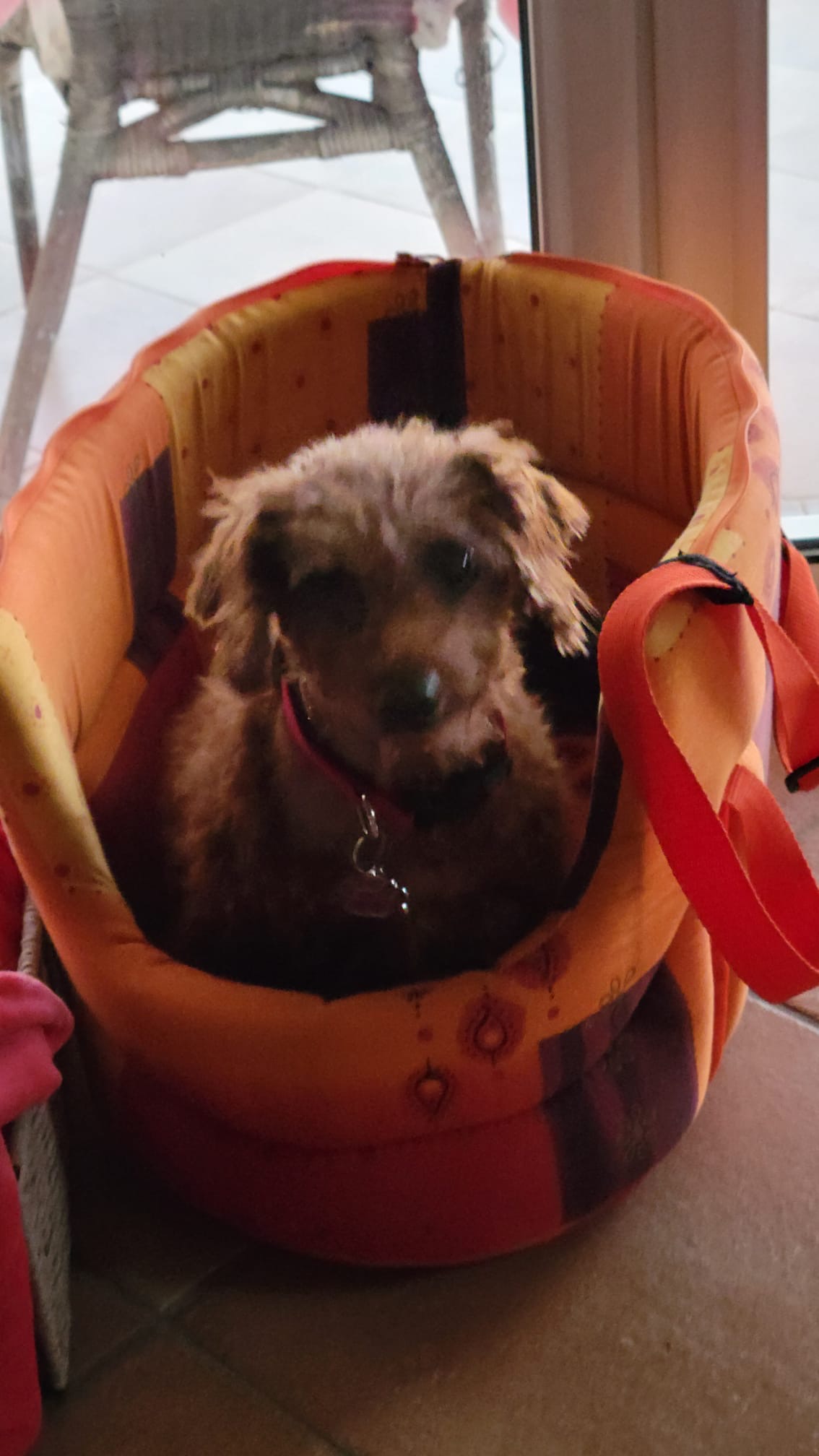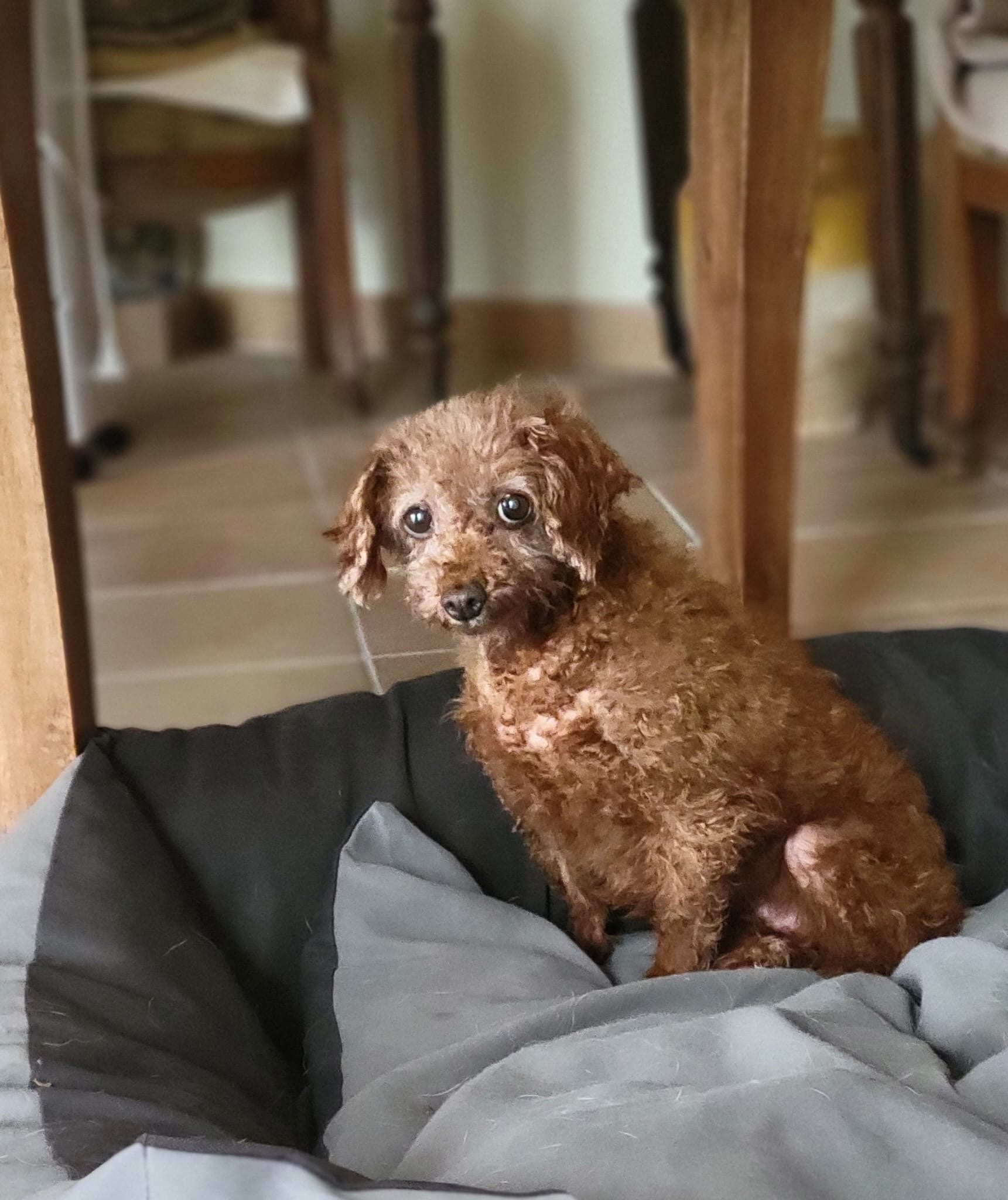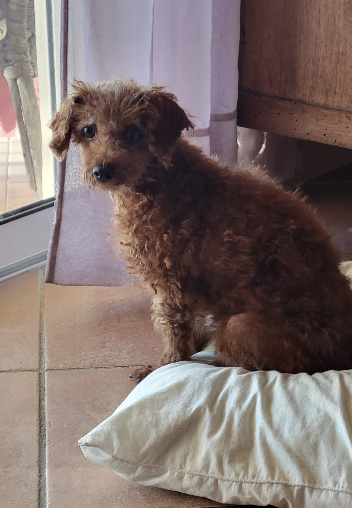 DAISY est une chienne de type Caniche, non lof, couleur chocolat.