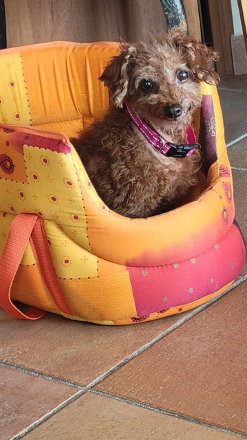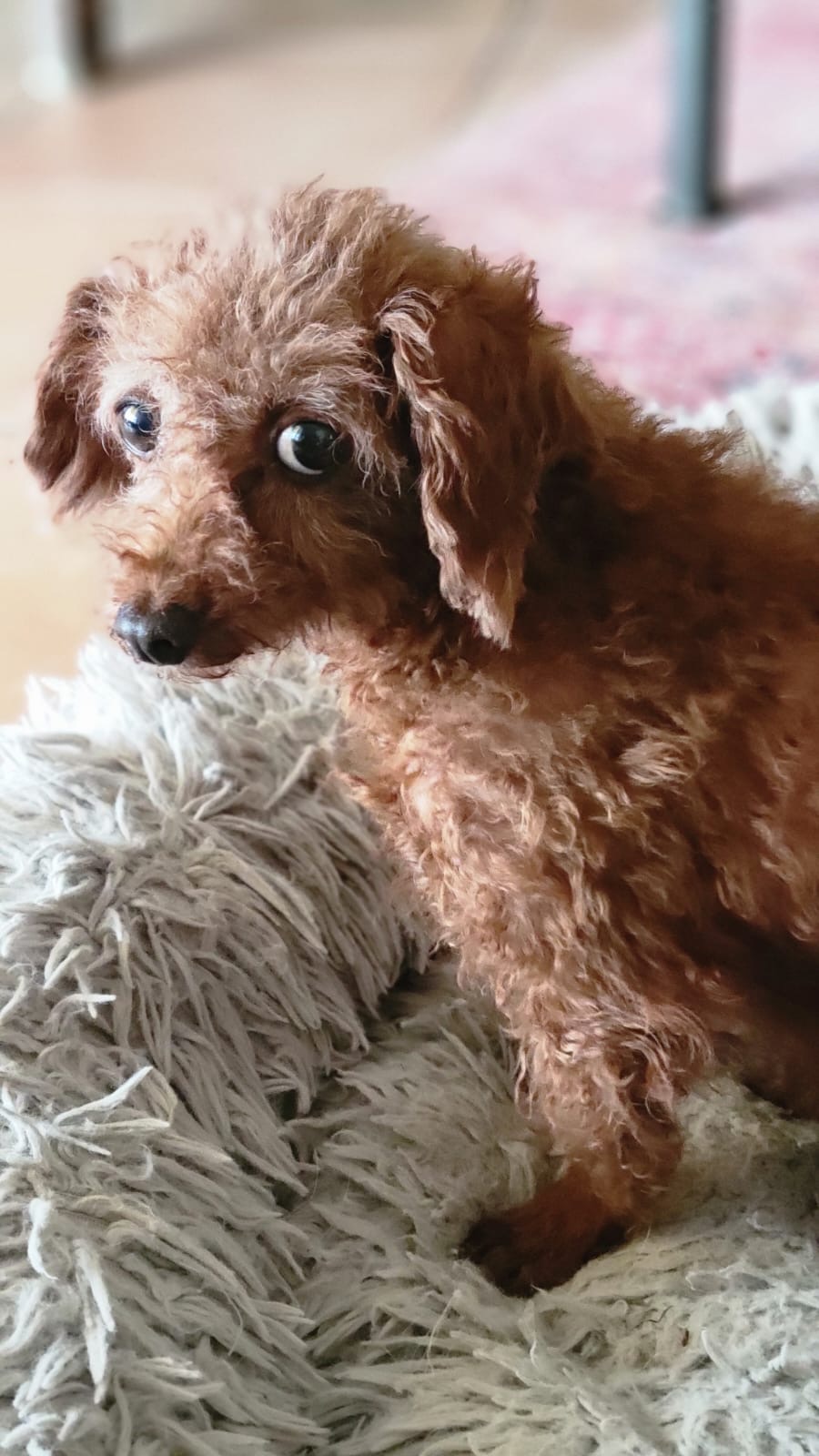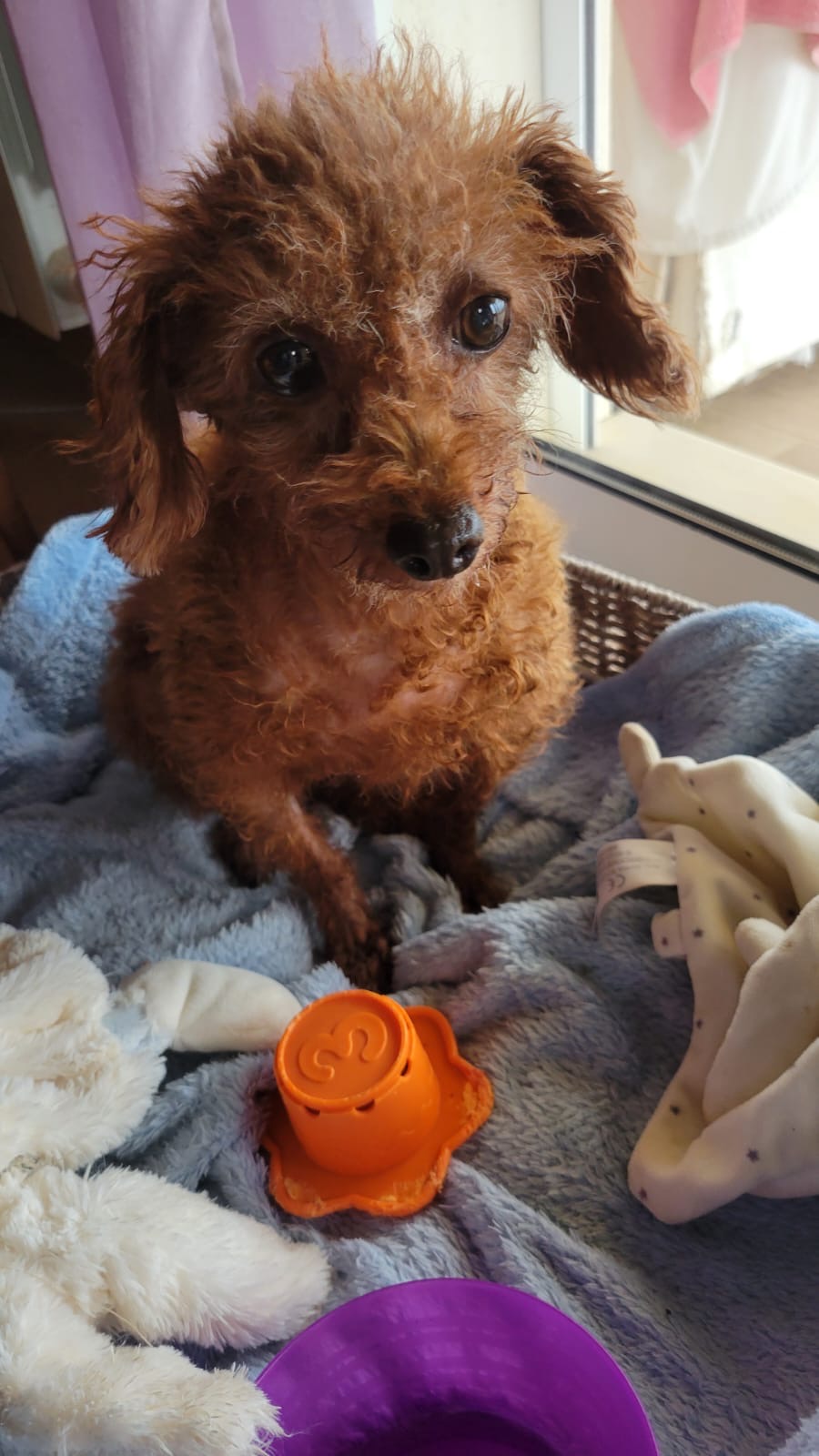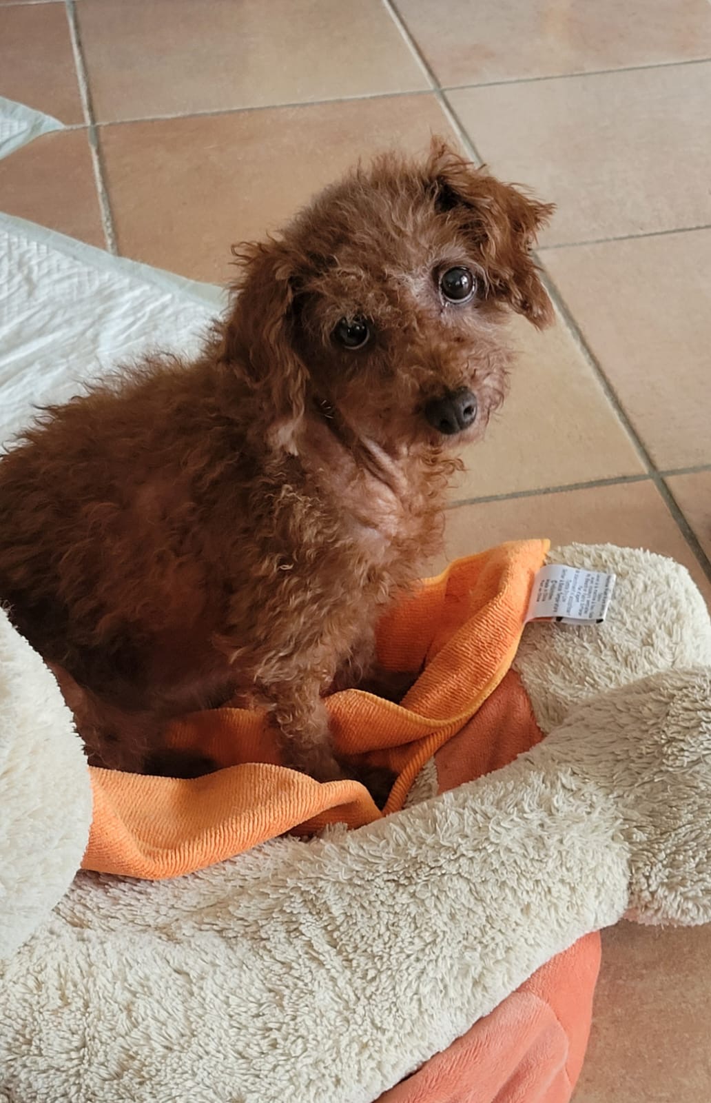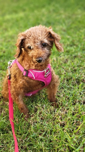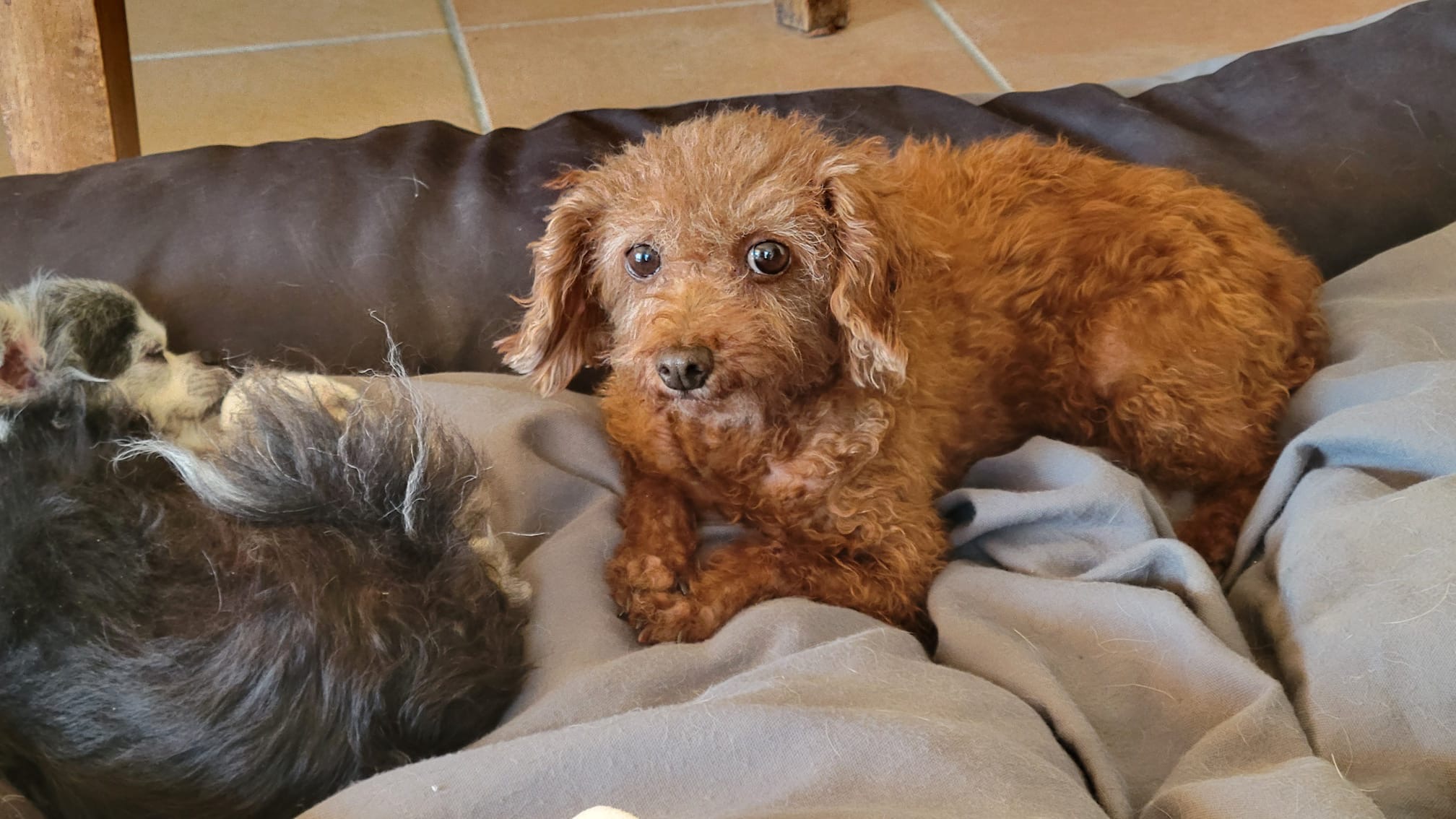 DAISY est une chienne de type Caniche, non lof, couleur chocolat.
