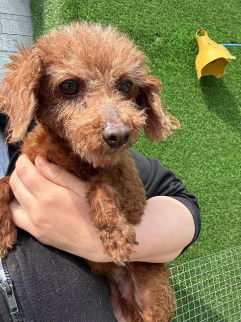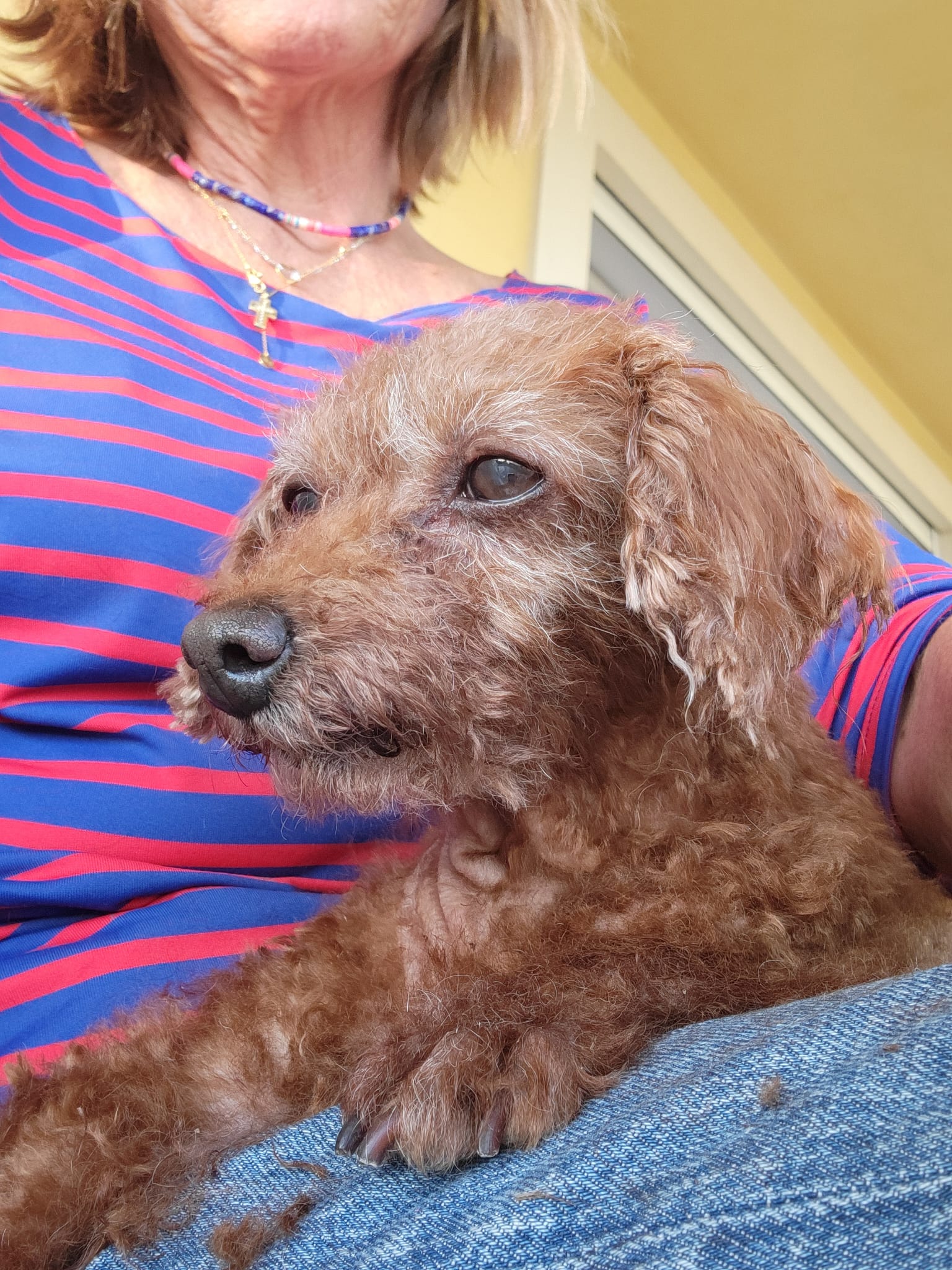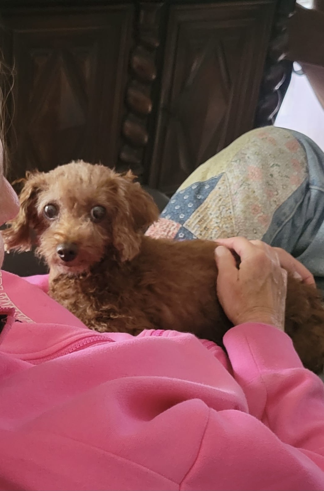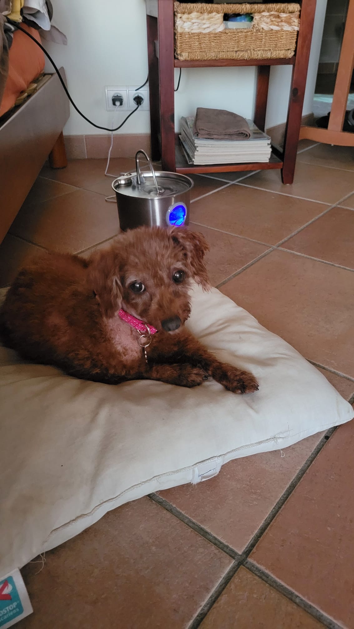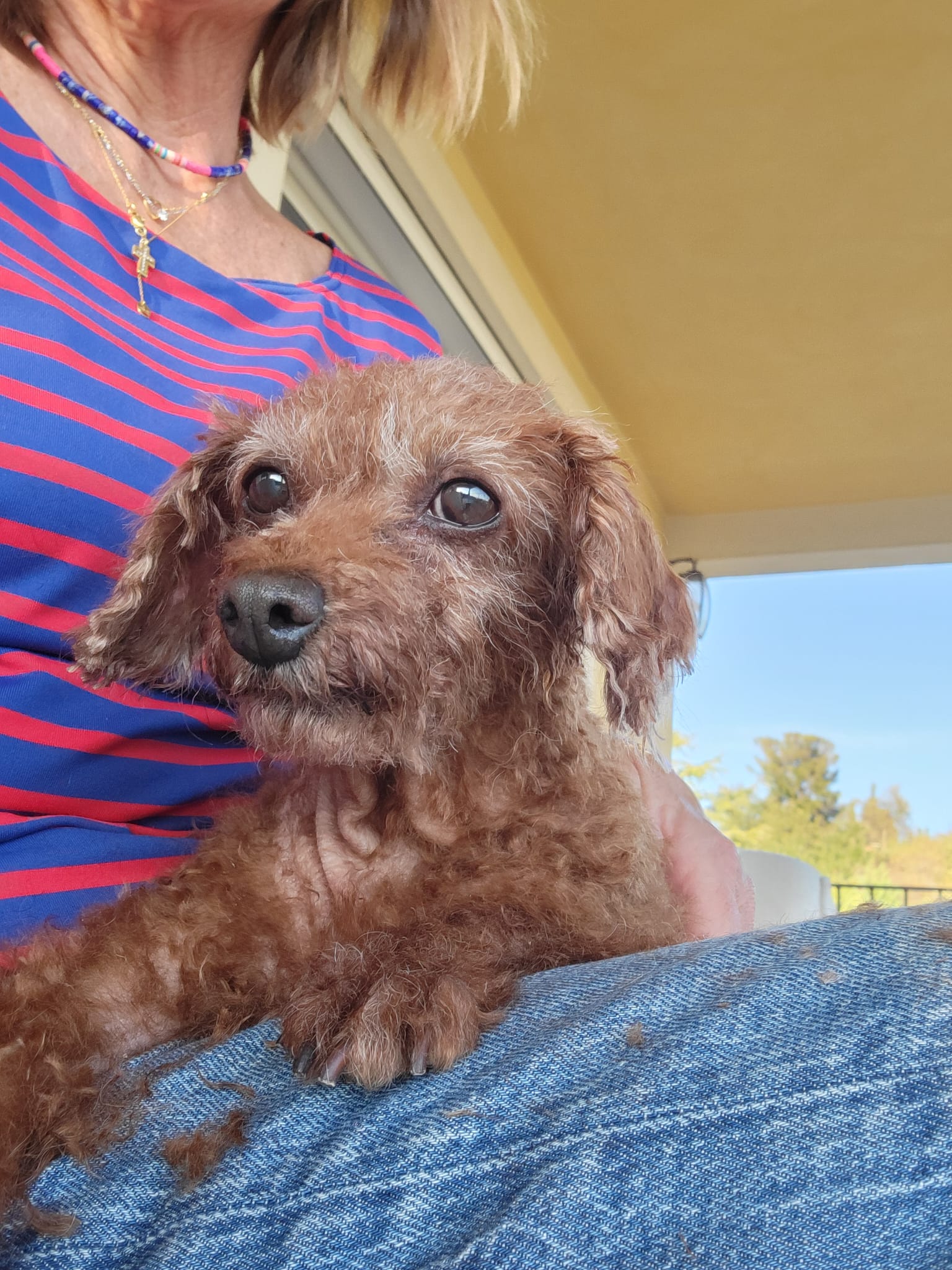 DAISY est une chienne de type Caniche, non lof, couleur chocolat.