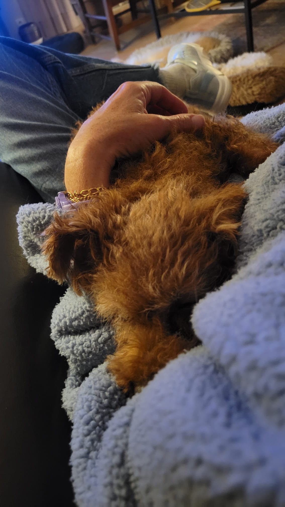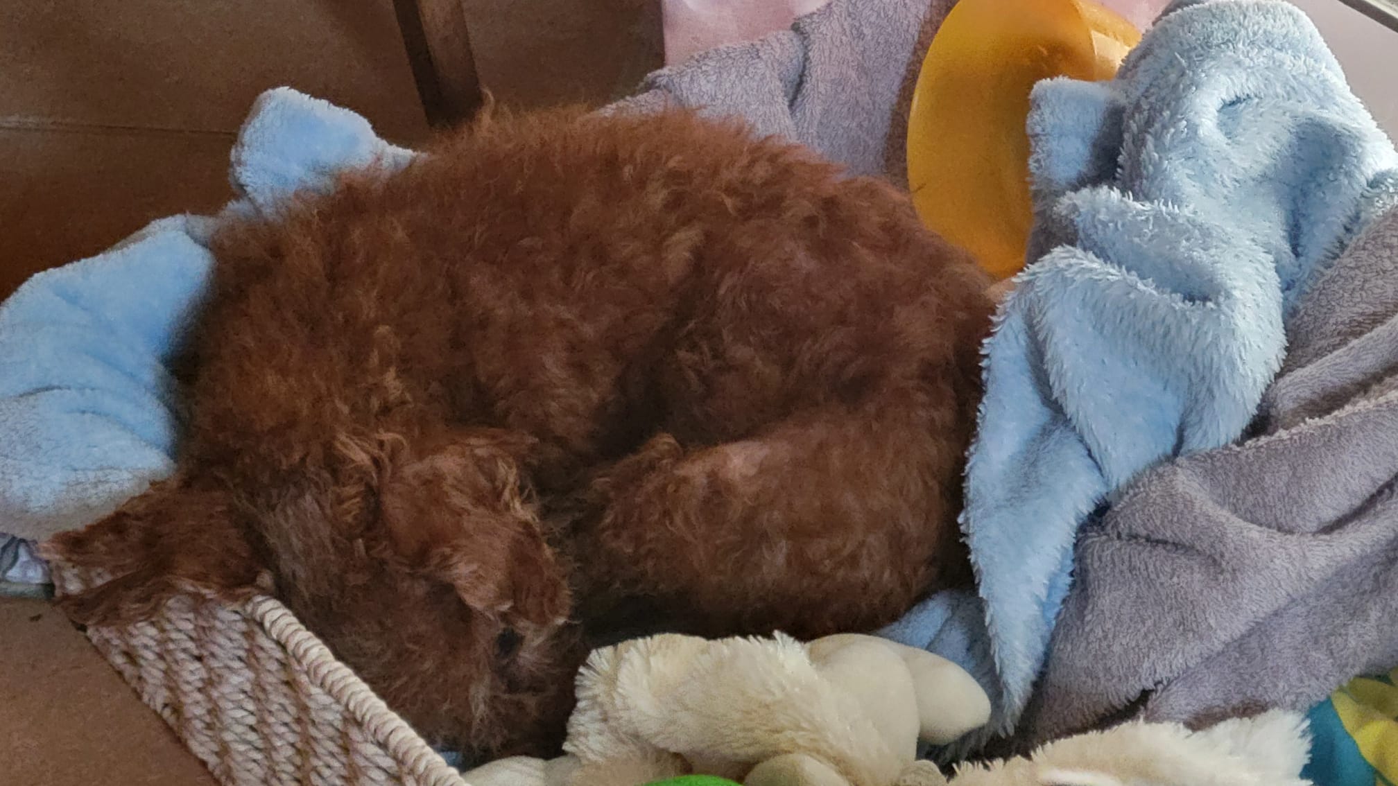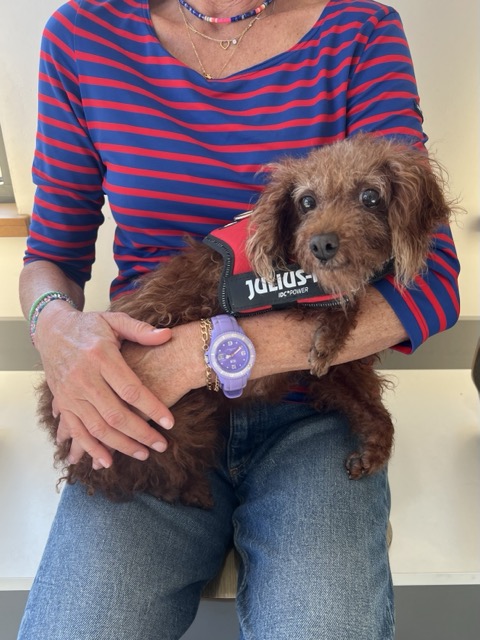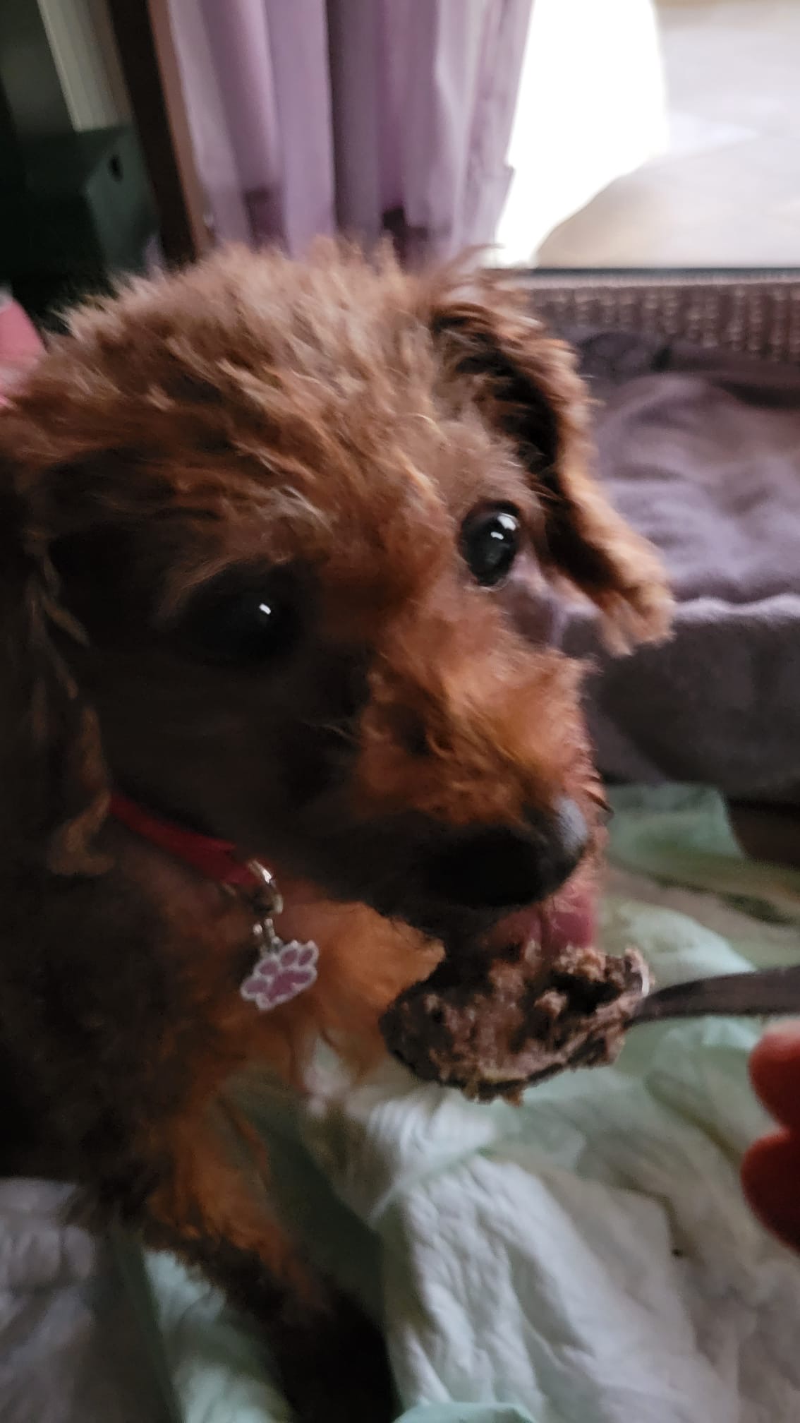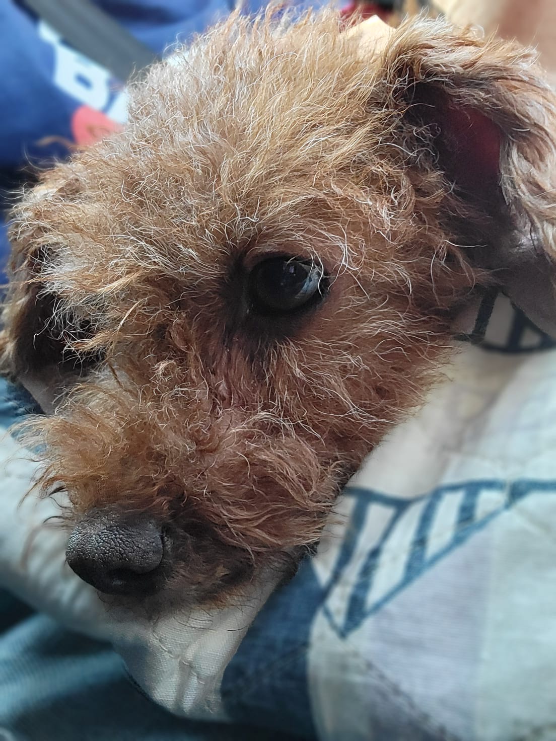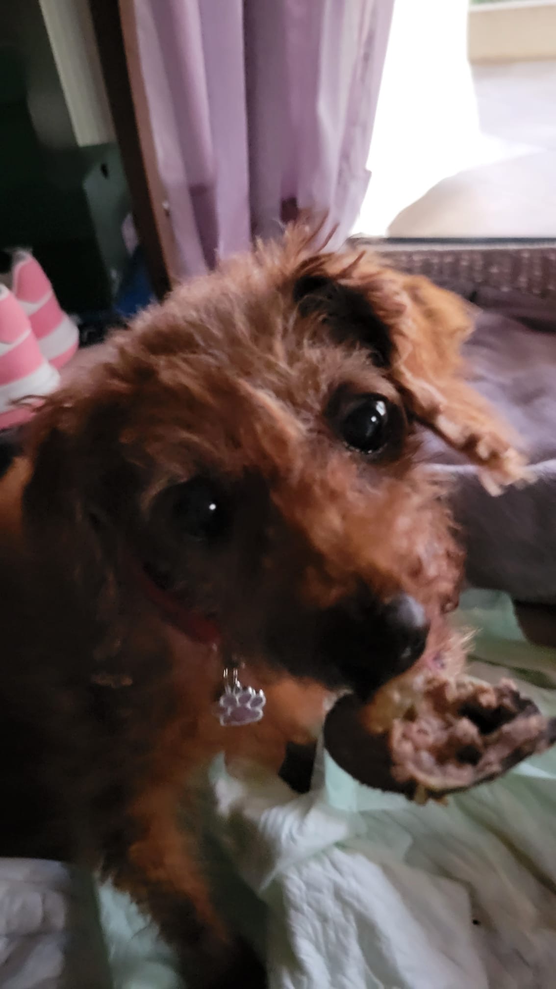DAISY est une chienne de type Caniche, non lof, couleur chocolat.