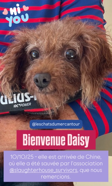 DAISY fait partie des chiens sauvés par l’association HARBIN SHS, en Chine. Tous les chiens sauvés là-bas, étaient destinés à la consommation humaine et ce, de façon extrêmement barbare.