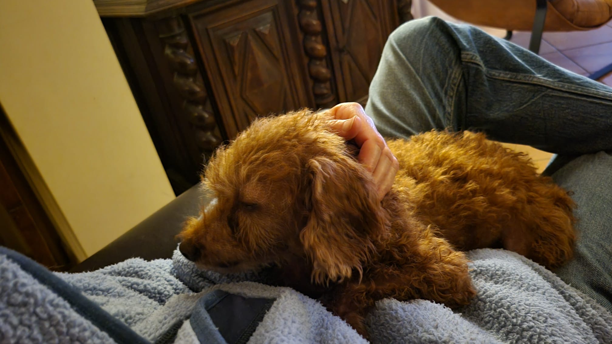 Les séances de câlins sur les genoux ou dans les bras, sont vitales à son bien-être et évolution. Cela la rassure et lui permet de tisser le lien de confiance.