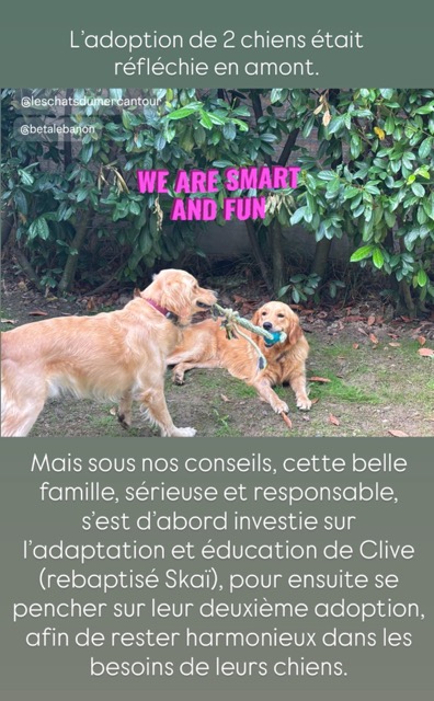 MERCI DE VOUS ABSTENIR SI VOUS N’AVEZ PAS LES MOYENS DE VOUS INVESTIR AUPRÈS D’UN COMPORTEMENTALISTE EDUCATEUR CANIN ET/OU SI VOUS N’ÊTES PAS ASSEZ DISPONIBLE AU NIVEAU DU TEMPS ET ENERGIE À ACCORDER À UN CHIEN ET SON ADAPTATION.