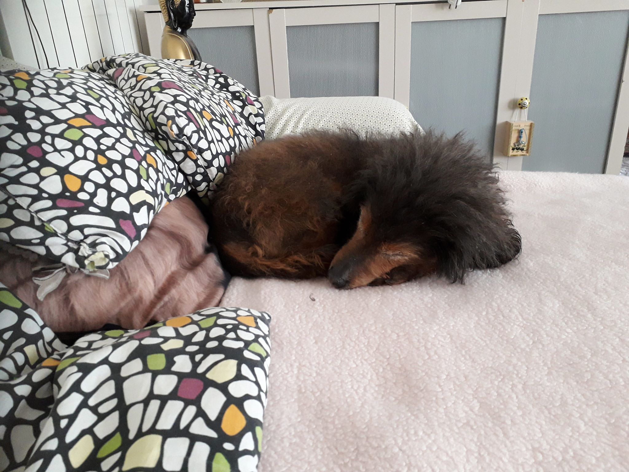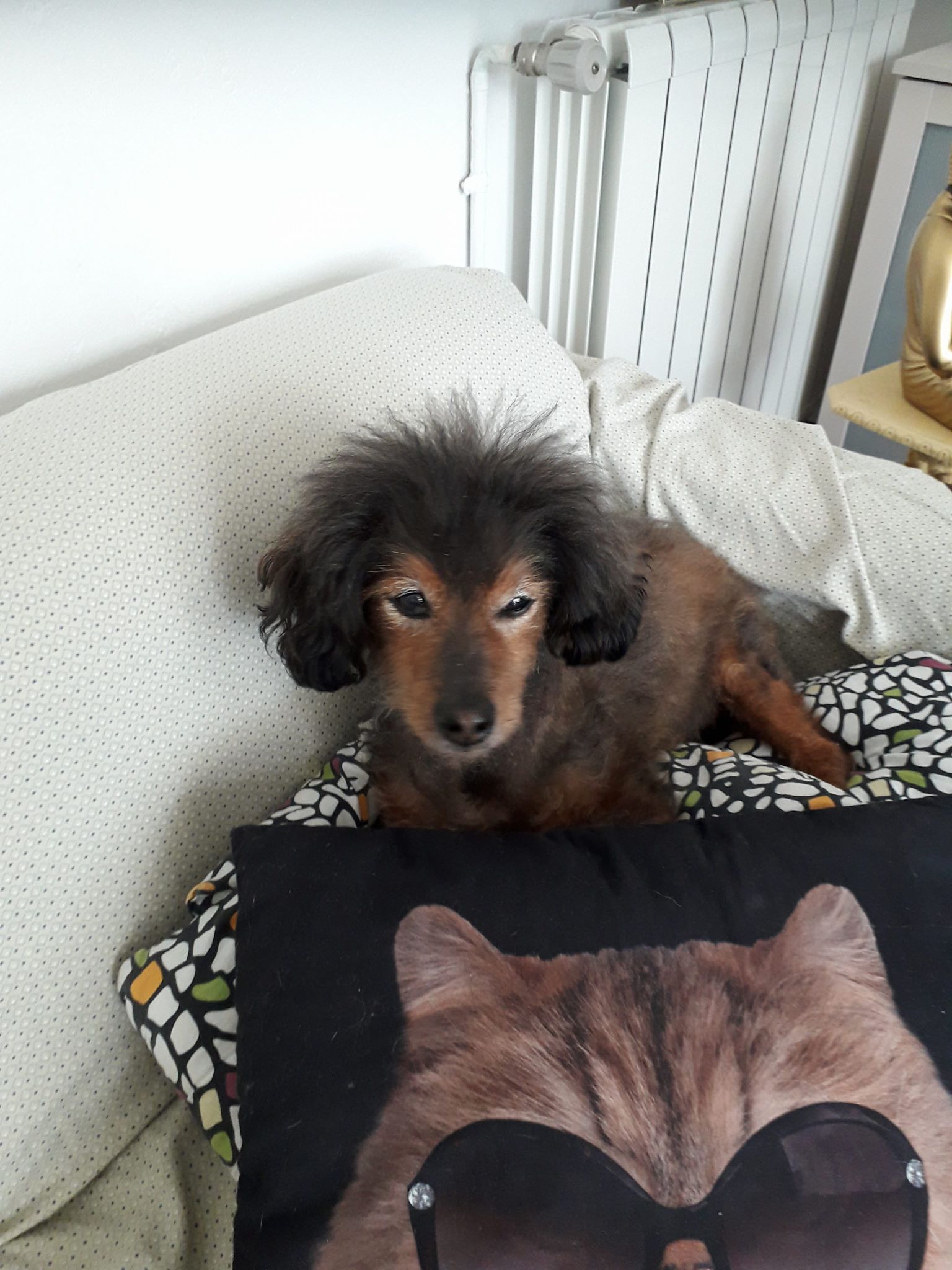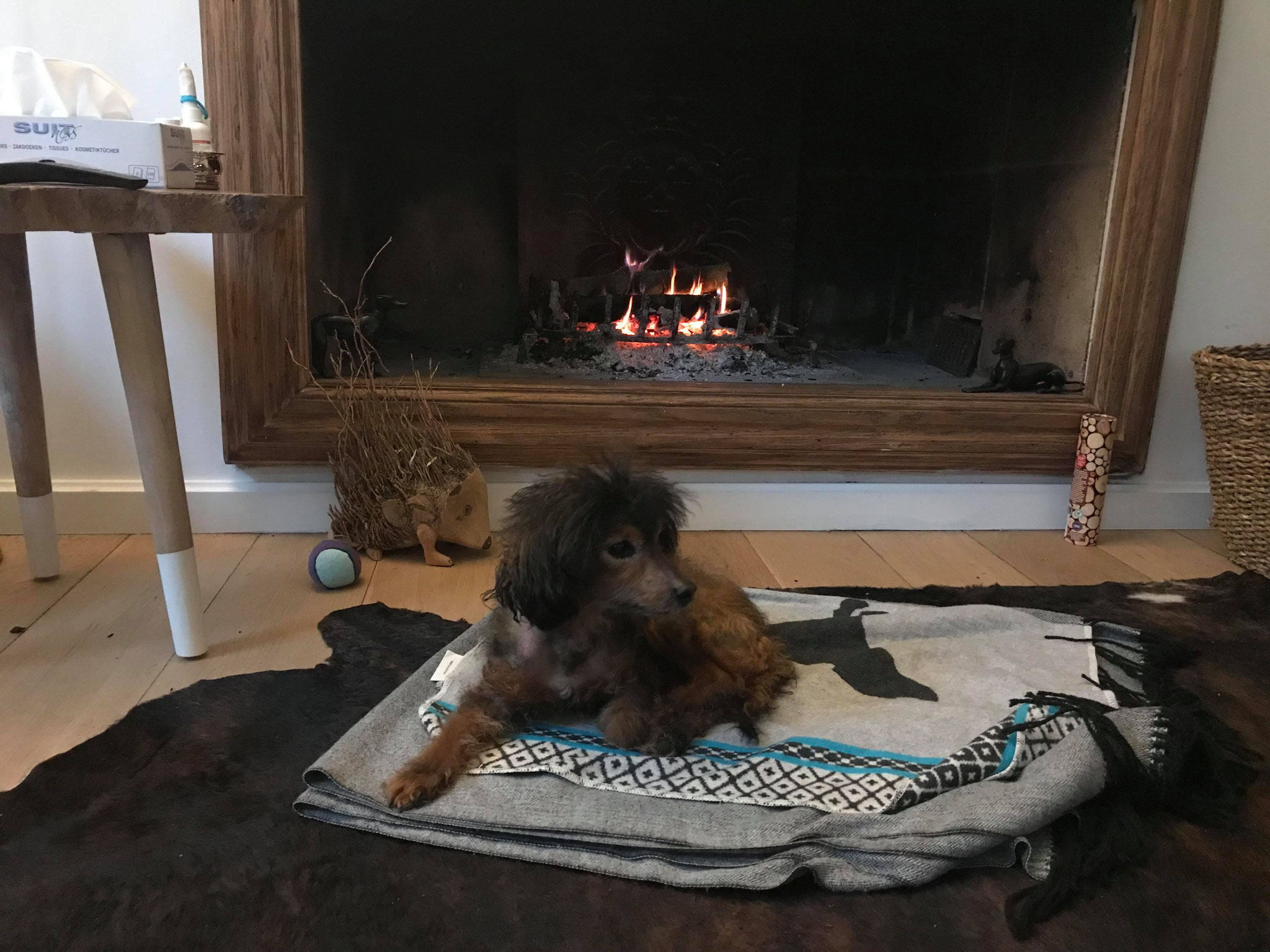 A la maison, c’est un calme, il n’a pas l’habitude de monter sur le canapé ou le lit, et appréciera de dormir sur son plaid ou dodo au sol, bien au chaud.