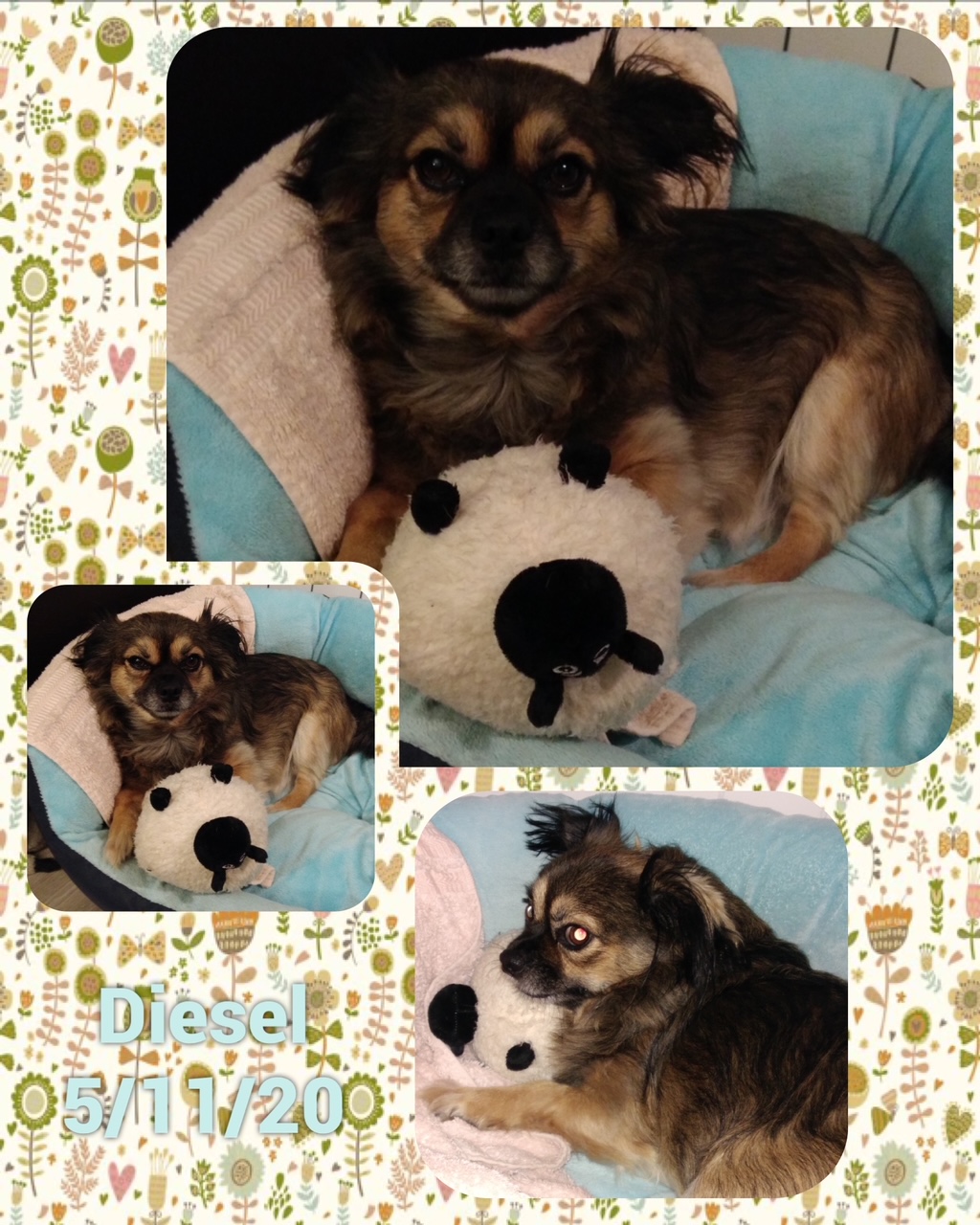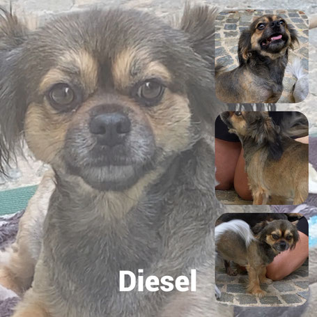 Diesel est un chien de type Chihuahua à poil long, non lof, couleur fauve charbonné.