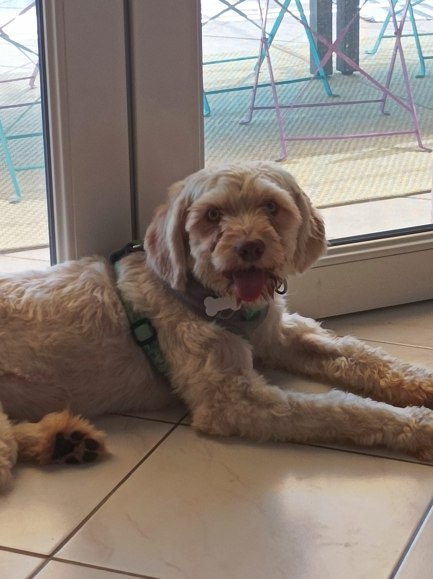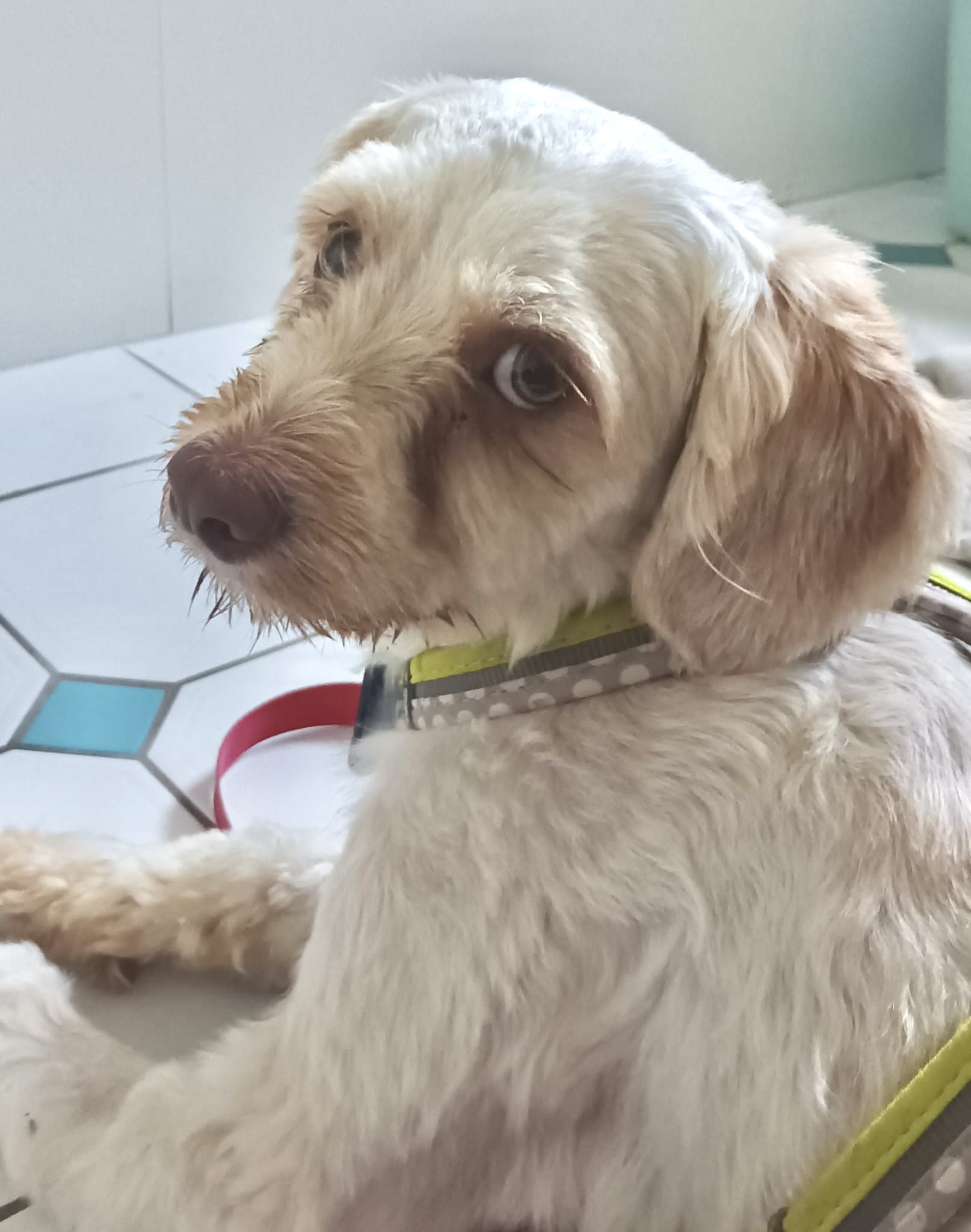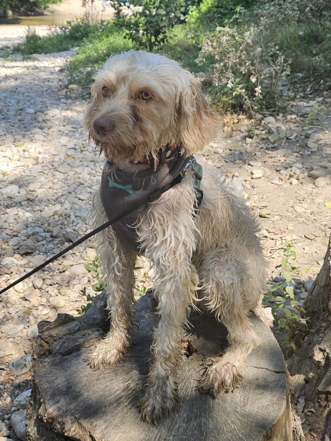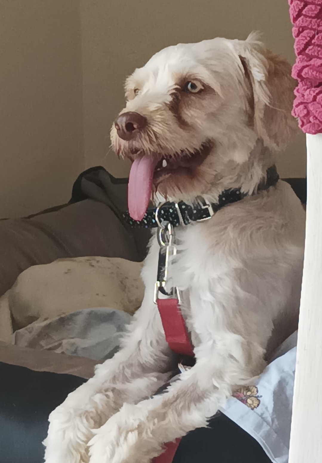 Sage, propre, sensible, c’est un chien qui sera parfait une fois ses quelques peurs dépassées.