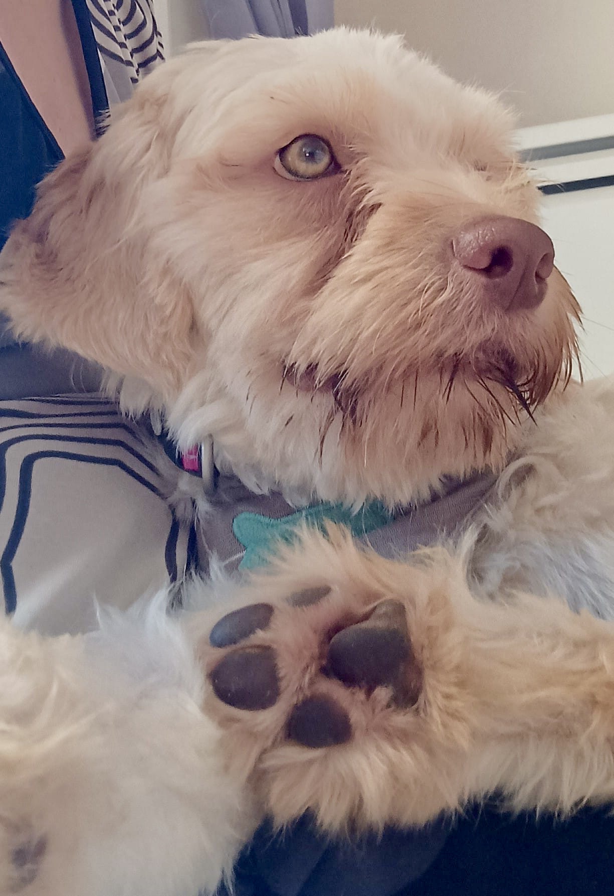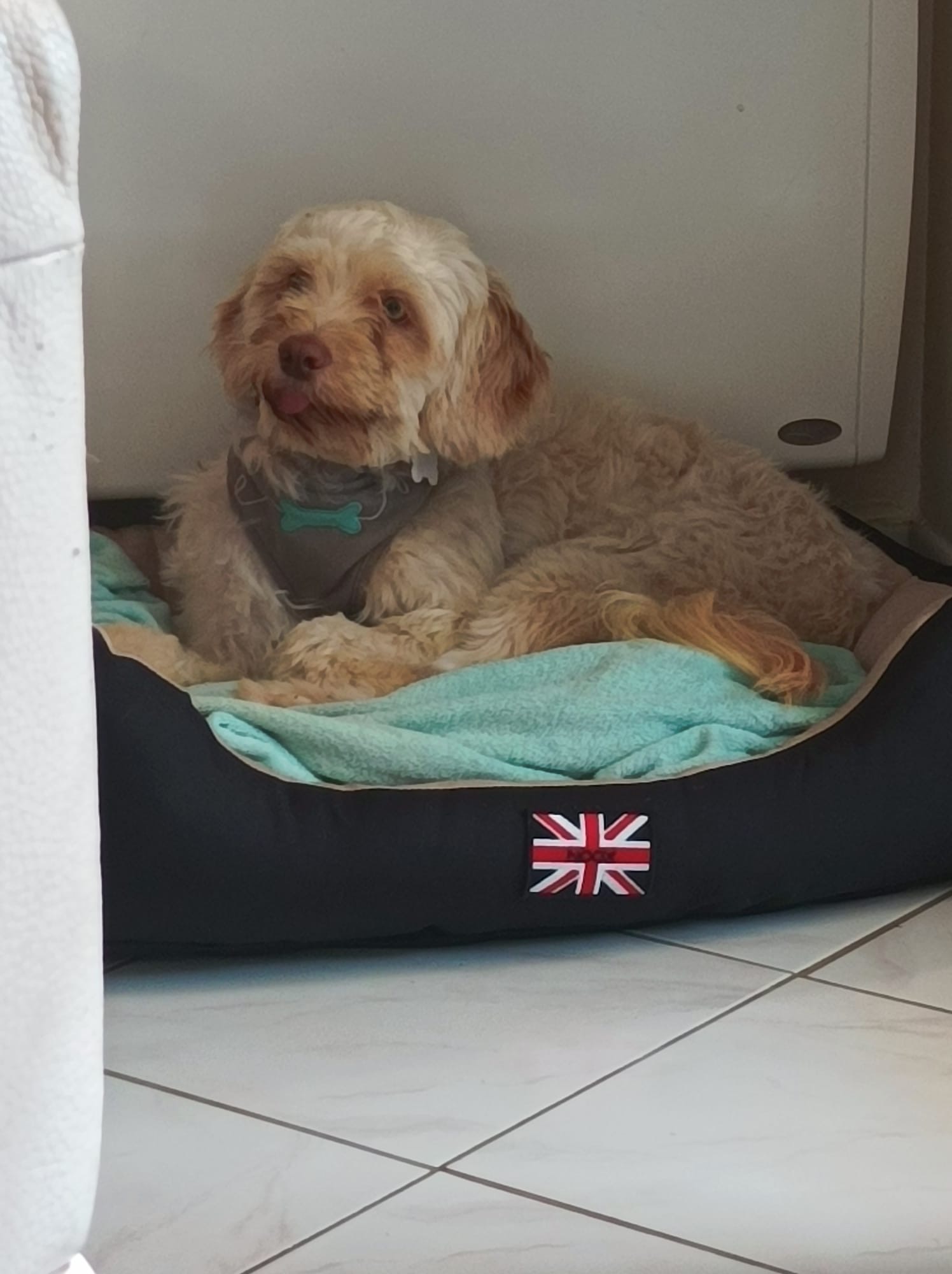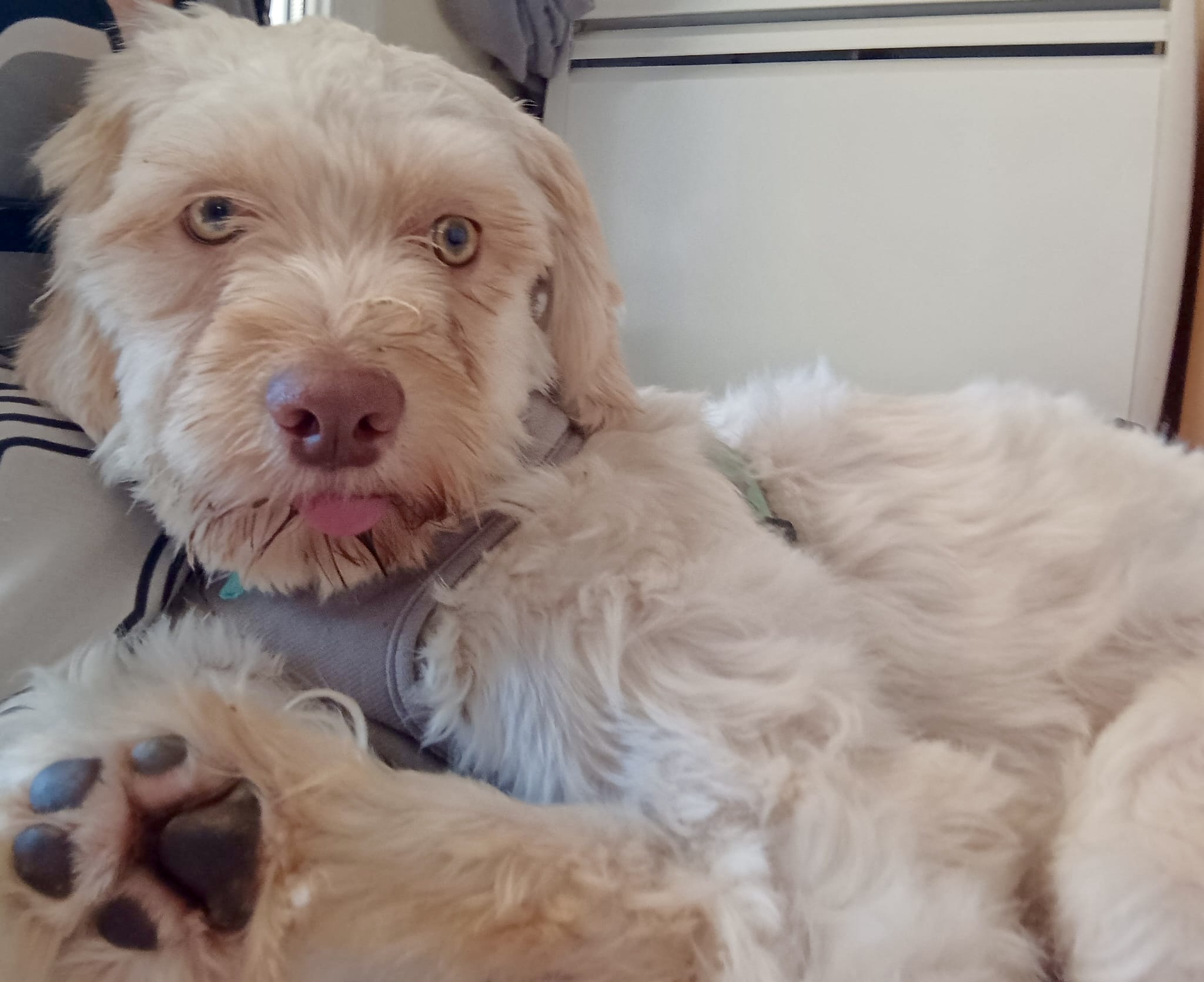 Sage, propre, sensible, c’est un chien qui sera parfait une fois ses quelques peurs dépassées.