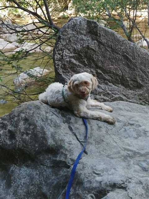 Pour le moment, il reste assez craintif vis-à-vis des hommes et des enfants, à l’intérieur du foyer (mais pas à l’extérieur). Il faut lui donner du temps pour se mettre en confiance, en douceur.