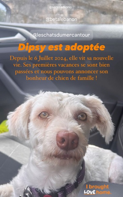 DIPSY a été trouvée abandonnée, dans la rue au Liban, avec ses parents et sa fratrie. Son père, Louie, a été adopté en France en début d’année.