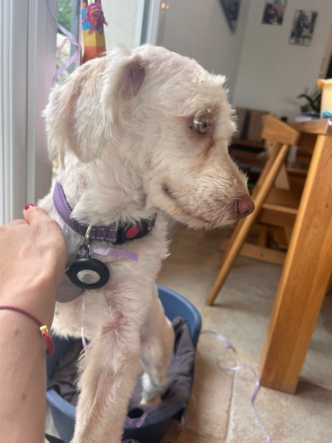 Sa date de naissance est estimée au 5/5/23 et elle pèse environ 8kg.