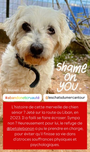 *Ce chien est actuellement au Liban et ne sera rapatrié en France, dans le 06, que lorsqu'une famille d’accueil ou d'adoption se proposera de l’accueillir. La date du rapatriement dépendra de la disponibilité des vols. Merci donc de faire preuve de compréhension et de patience