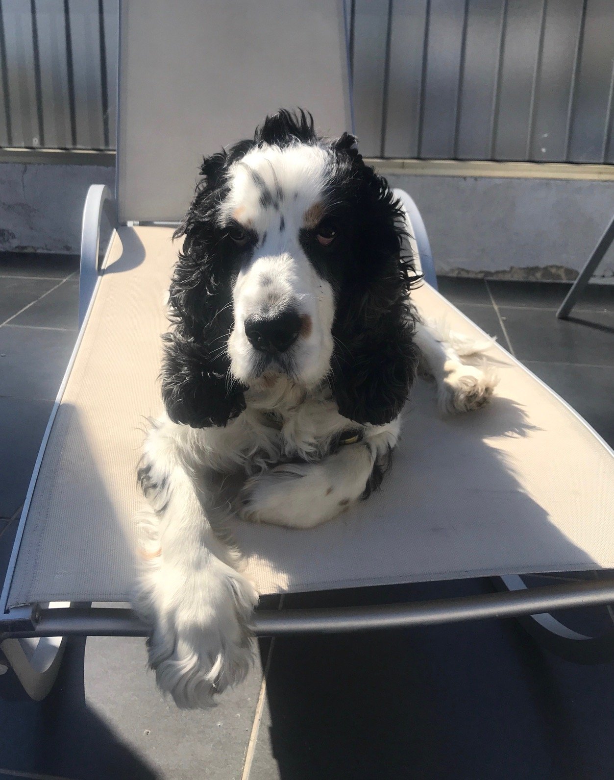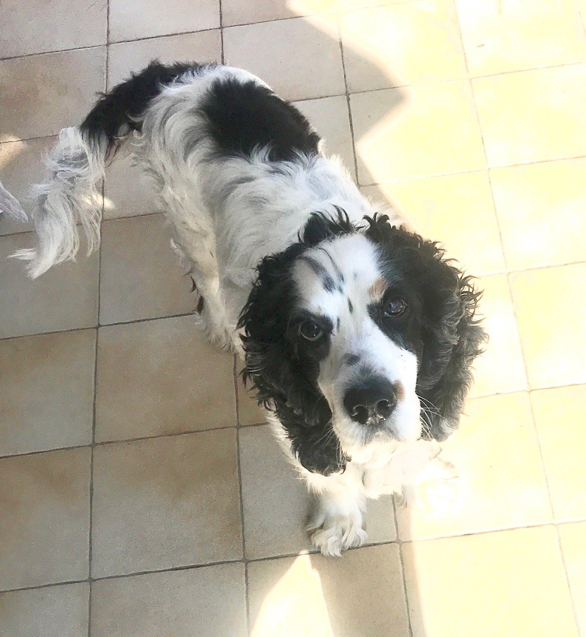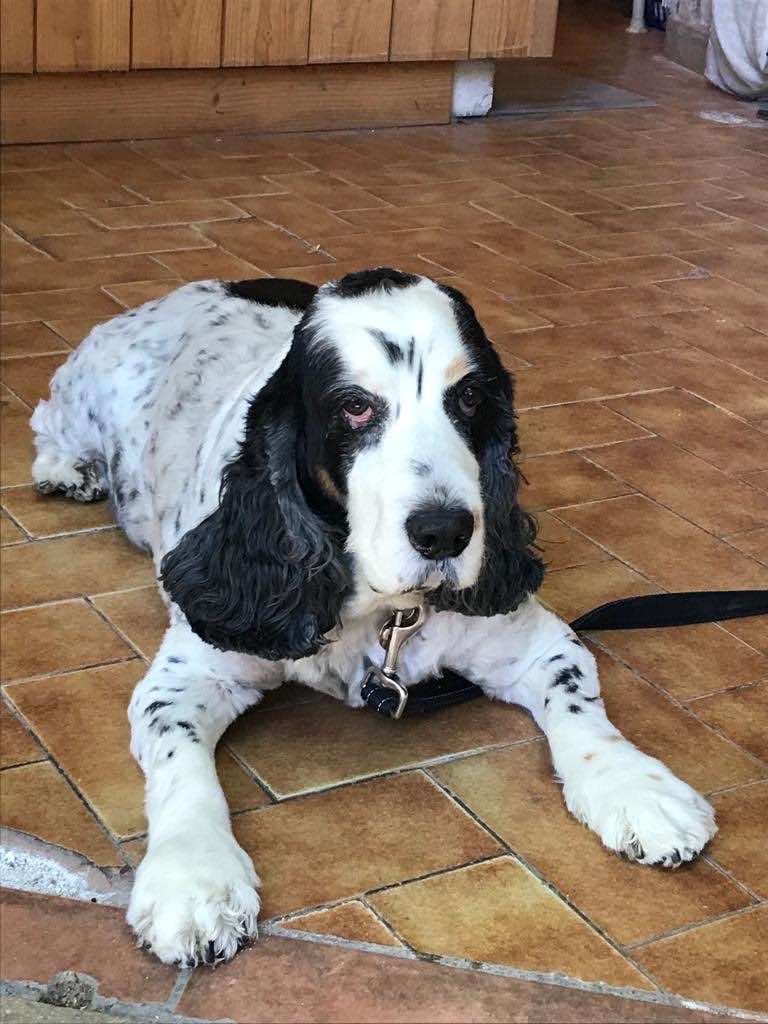FINGER est un chien de type Cocker Anglais, non LOF, tricolore.