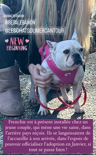 FRENCHIE était abandonnée au Liban, au refuge de BETA LEBANON, par sa famille suite à déménagement à l’étranger.