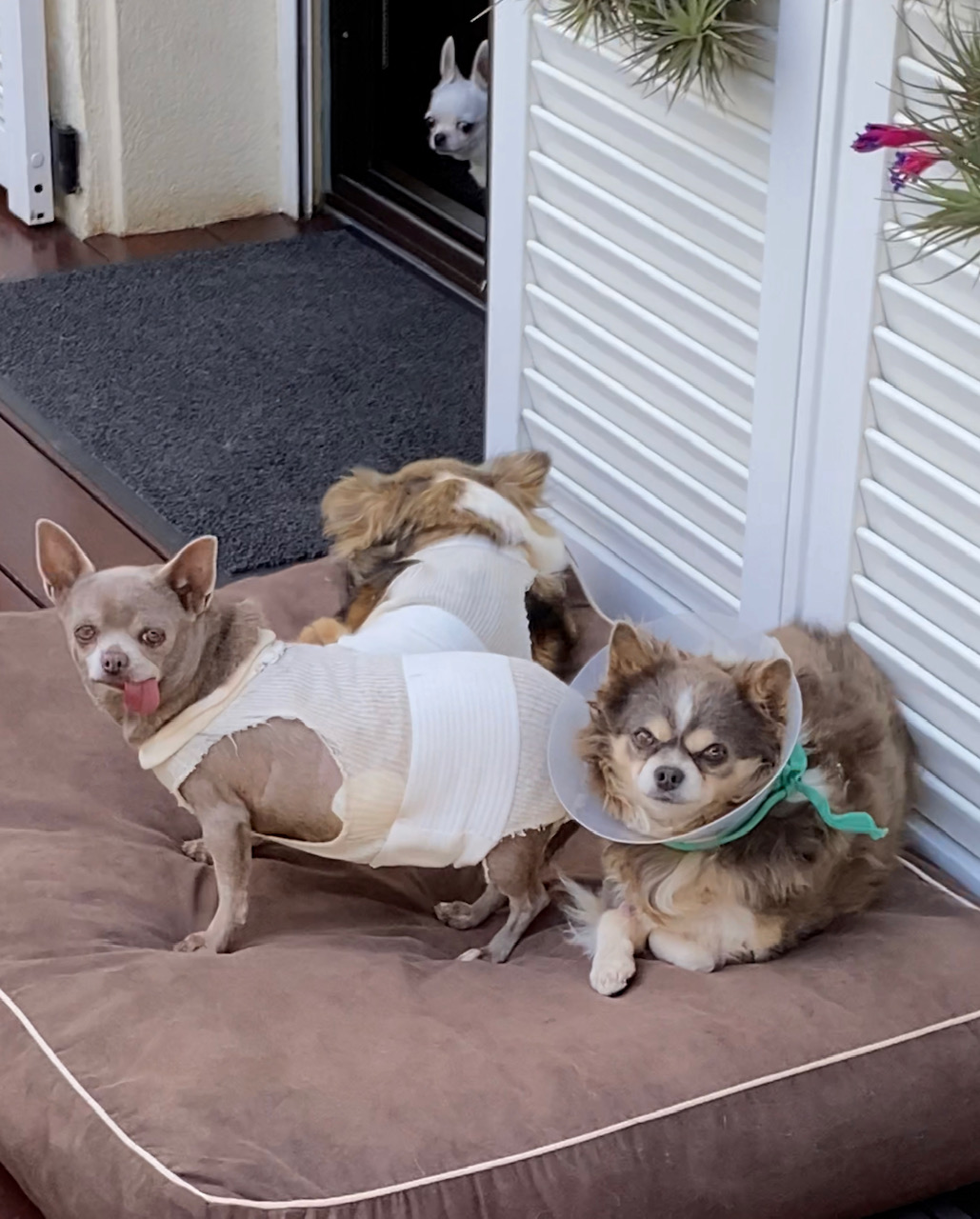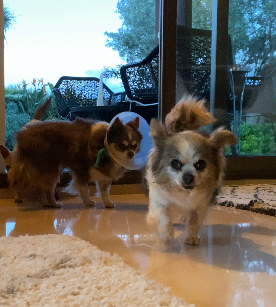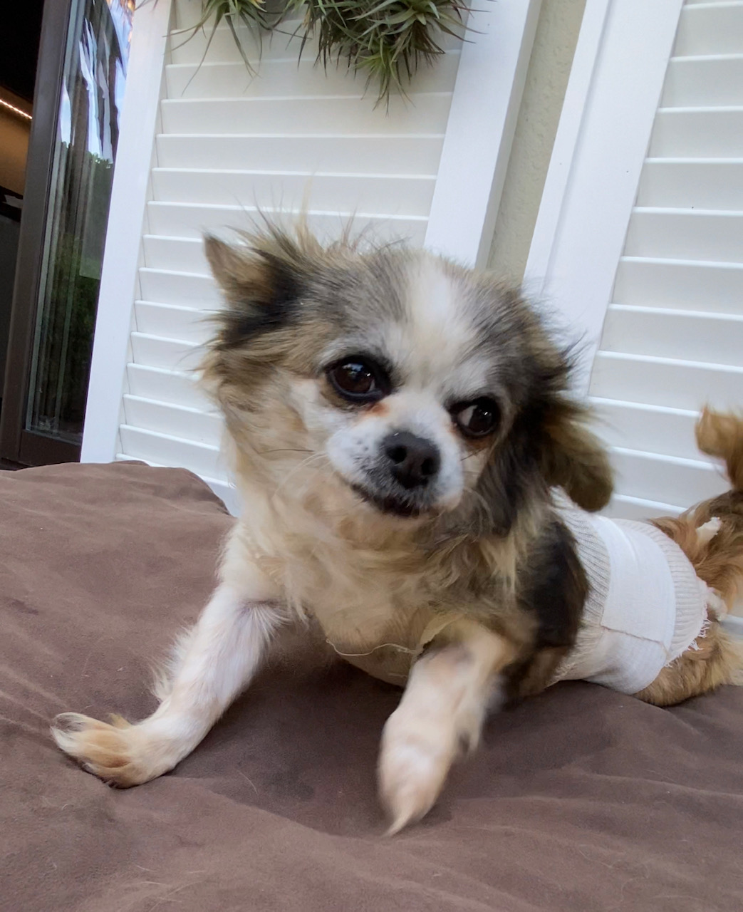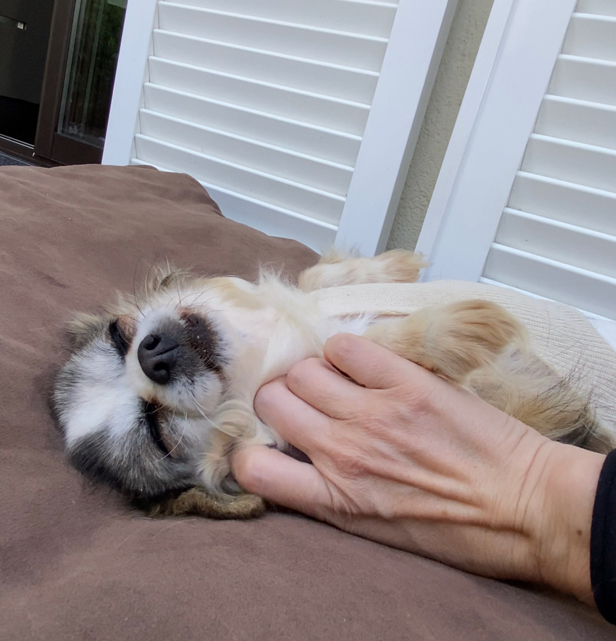 HAPPY est une chienne de race Chihuahua, lof, couleur Fauve et blanc au poil mi-long.