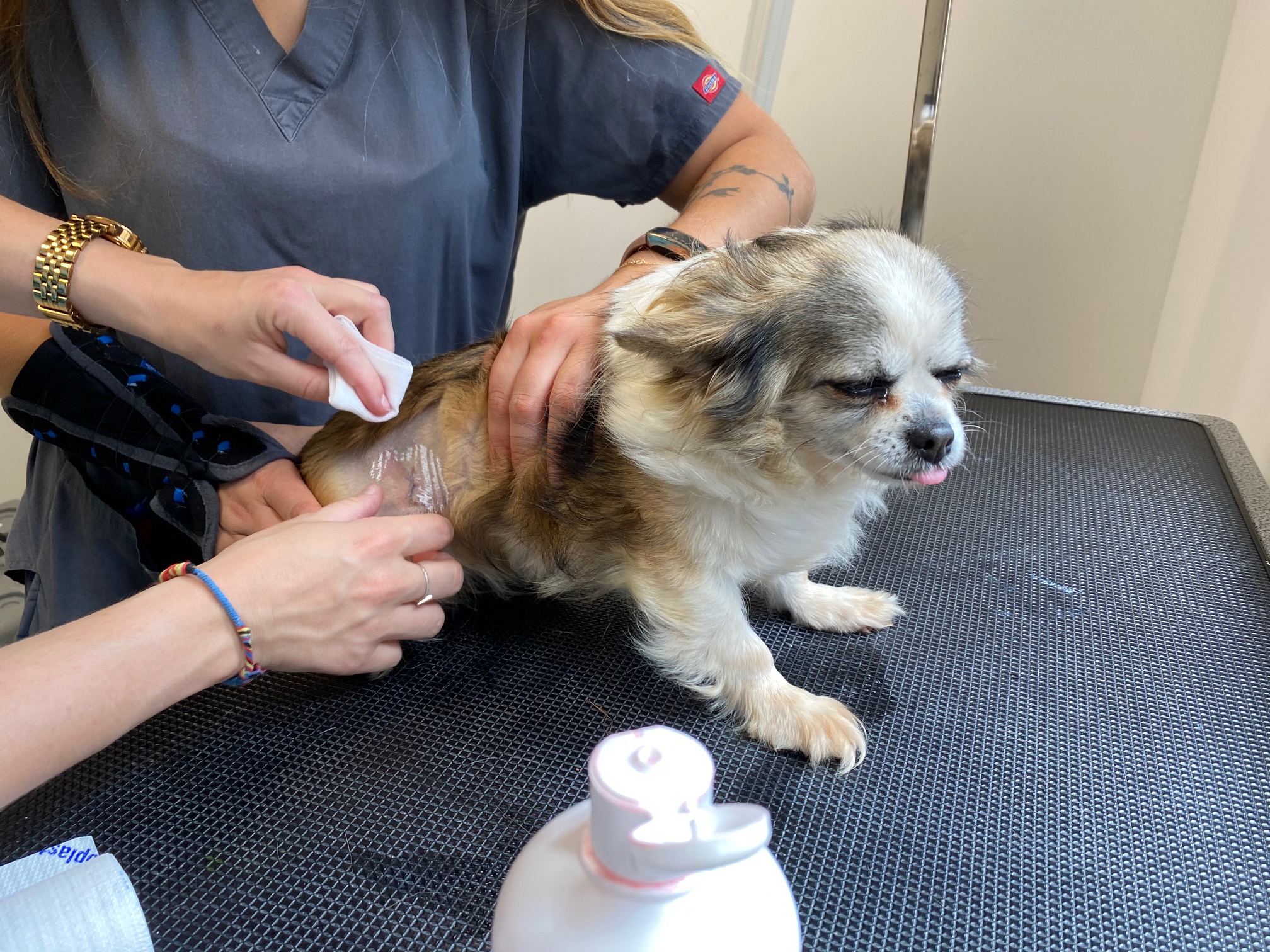 Un peu craintive au départ, elle se met vite en confiance car elle ne résiste pas à sa séance de câlins.