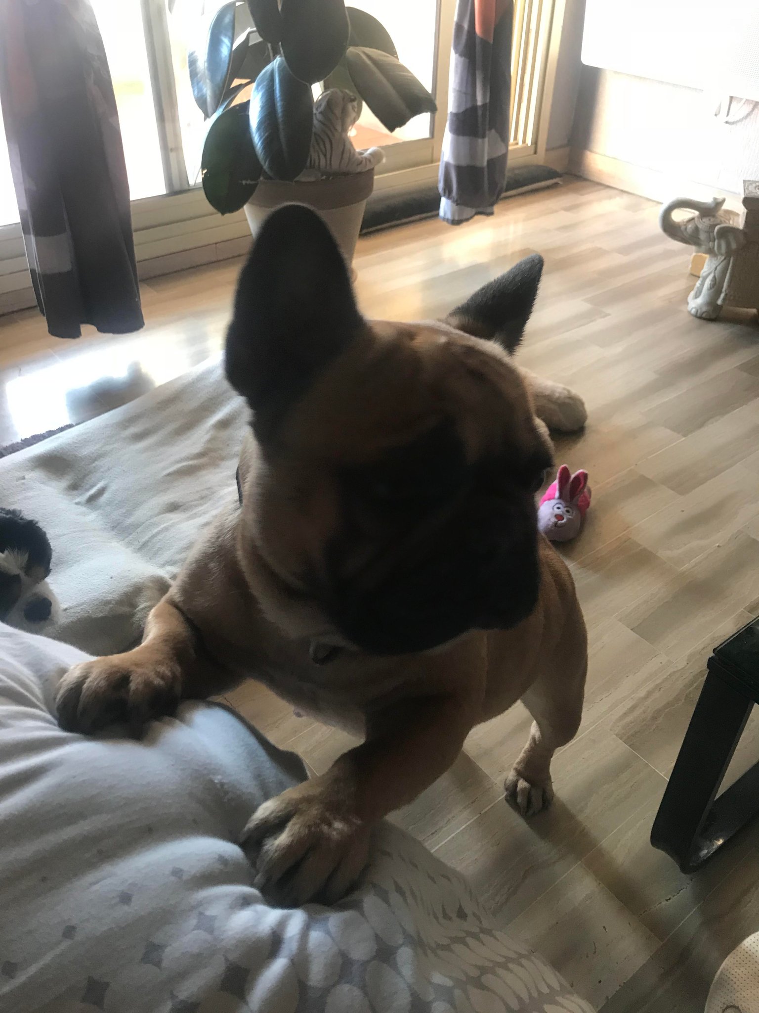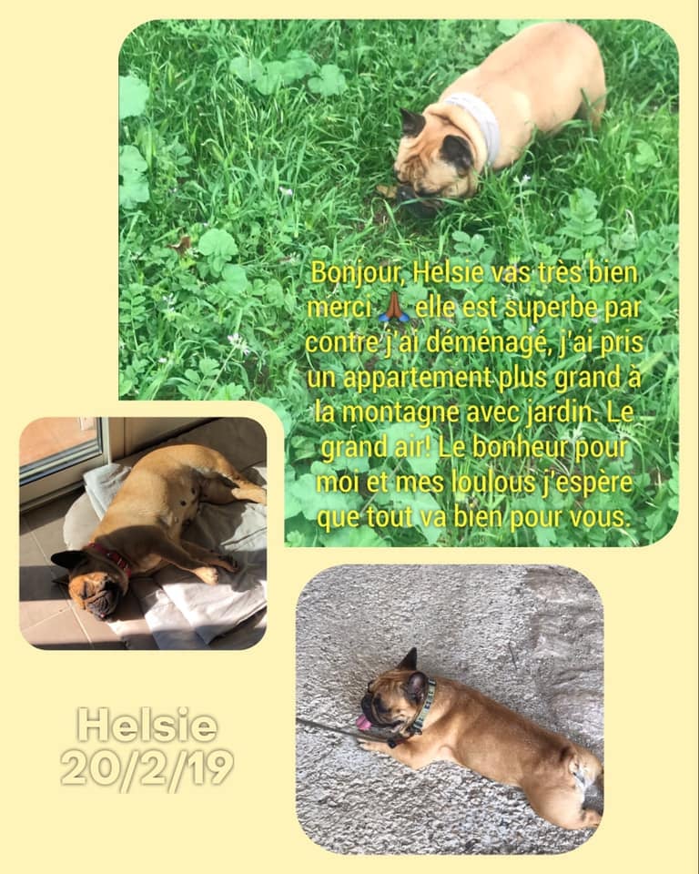 HELSIE est une chienne de race Bouledogue Français, lof, couleur fauve. Femelle née le 1/01/13, vaccinée, stérilisée, pucée 250268710254250 et traitée contre les parasites.