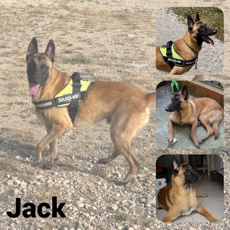 JACK est un chien de race Berger Belge Malinois, non LOF, couleur fauve au masque noir.