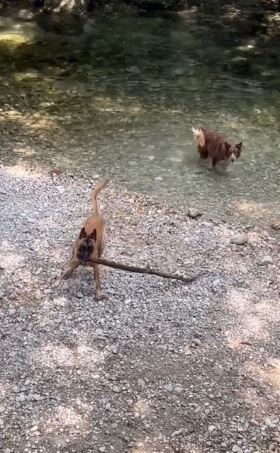 Il ne connait pas les chats et veut les courser quand il en voit.