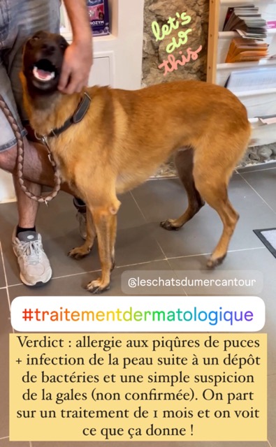 Il a terrain atopique (allergies), il faudra donc une bonne hygiène de vie (traitements antiparasitaires, alimentation, etc).