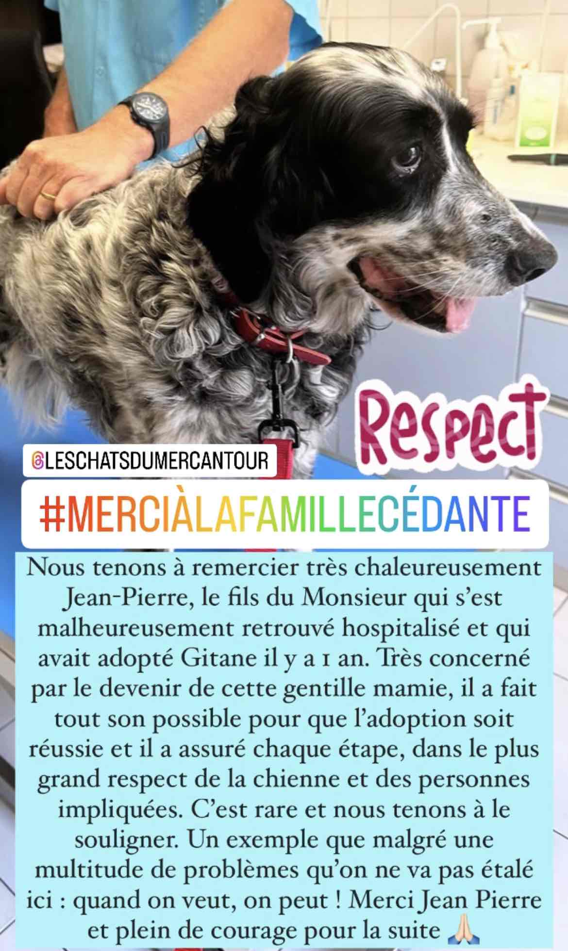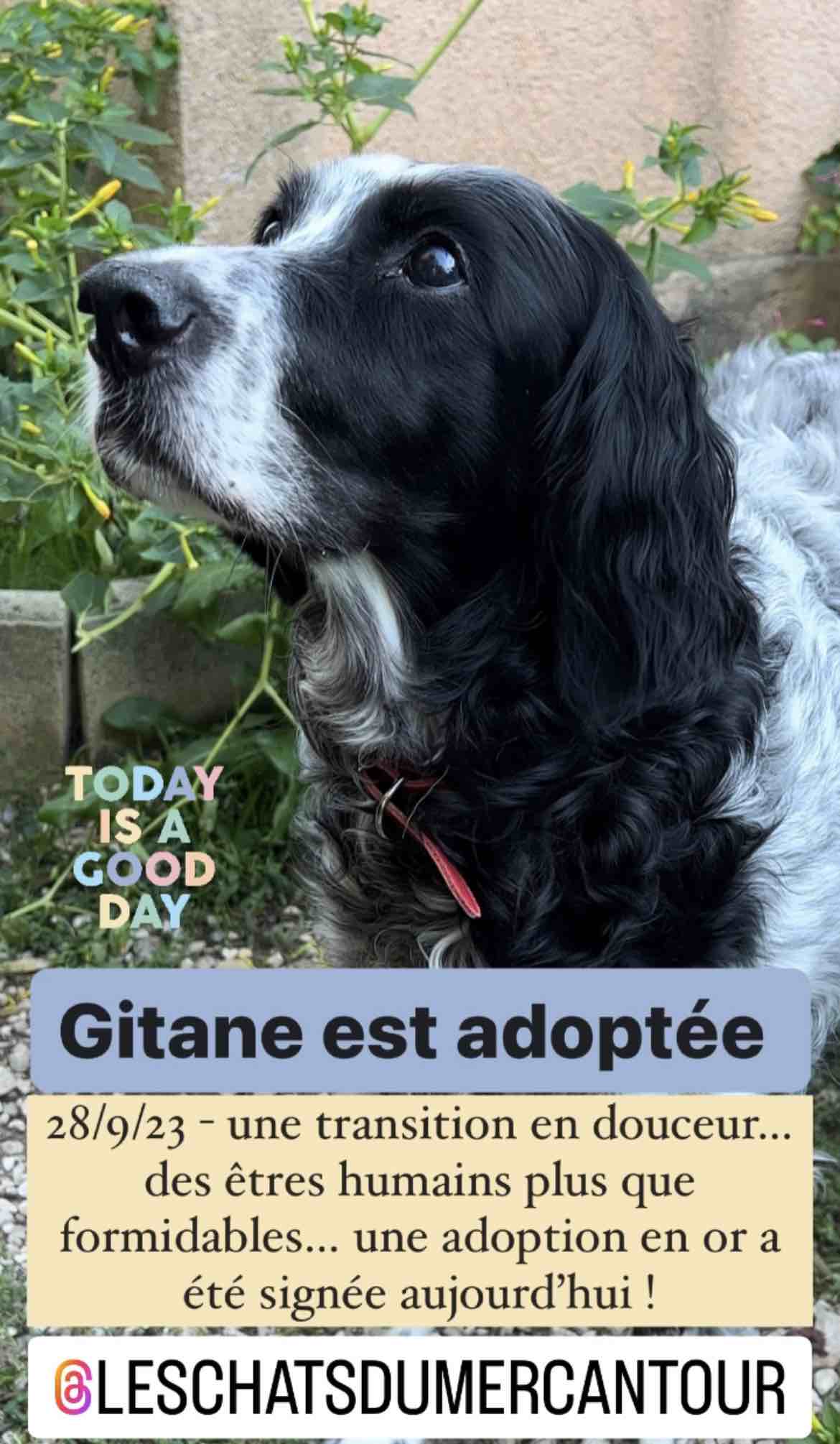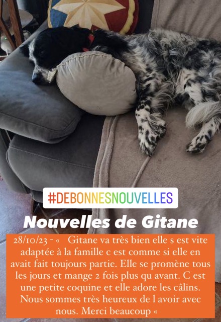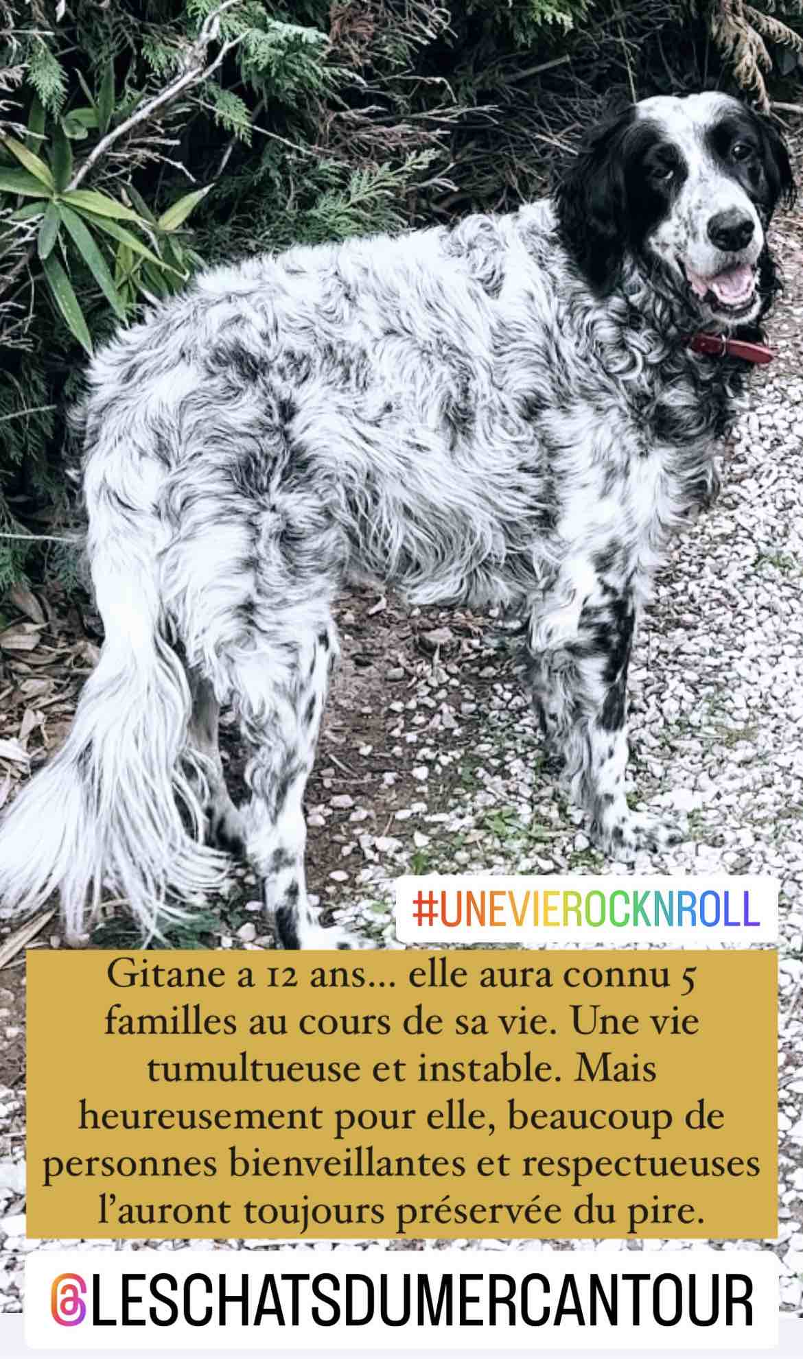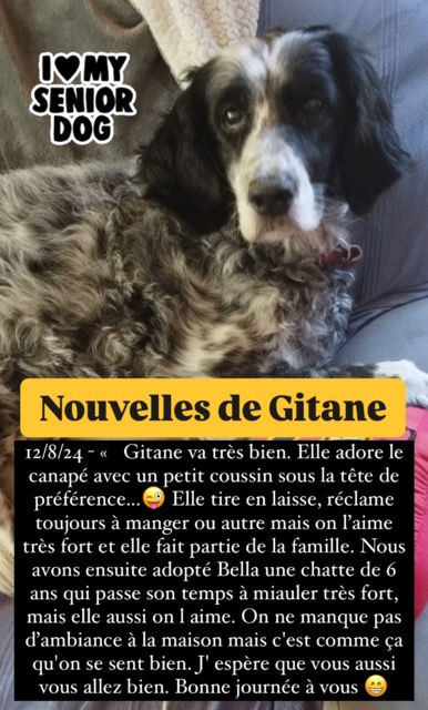 Pauvre Gitane… elle a perdu sa première famille qui l’adorait, il y 1 an, dans un terrible accident de voiture. Elle a ensuite été adoptée par un Monsieur très âgé, qui est aujourd’hui parti en ehpad. Gitane se retrouve à nouveau orpheline… elle a vraiment besoin de finir sa vie sereinement et tranquillement avec une famille aimante.