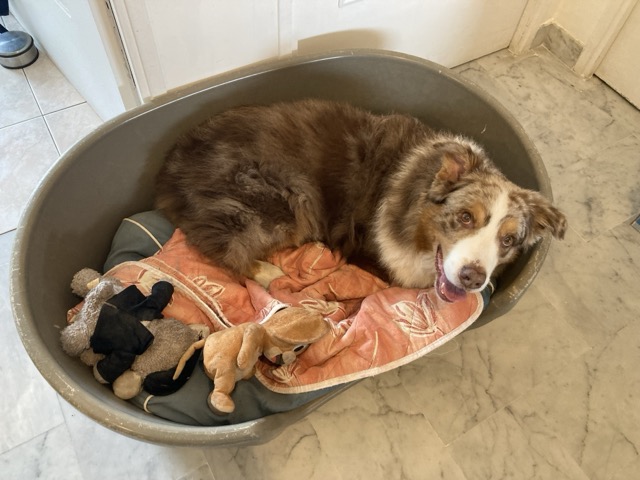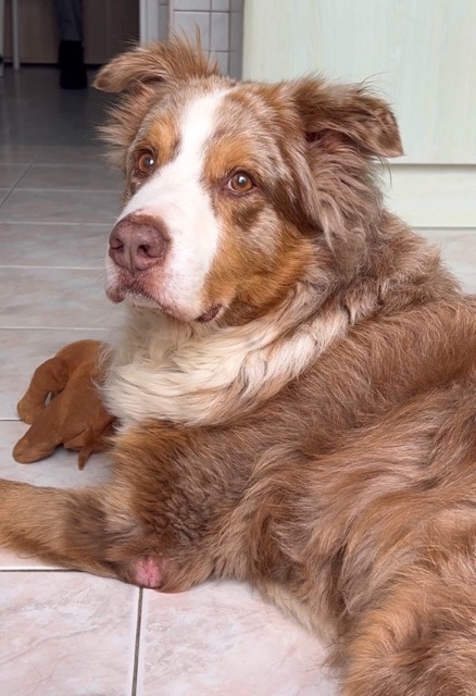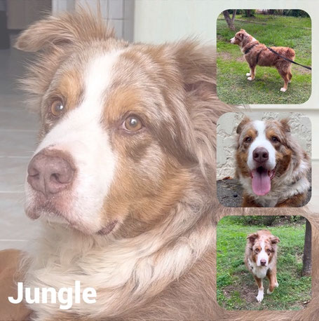 JUNGLE est un chien de race Berger Australien, LOF, couleur rouge merle.