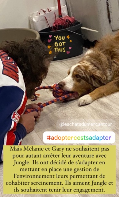 * Famille souhaitée : un foyer patient, INVESTI et disponible, qui ait conscience de toutes les responsabilités qu’impliquent le fait d’accueillir un animal. Sa famille devra pouvoir lui offrir une vie stimulante et équilibrée pour lui donner accès à un épanouissement physiologique, émotionnel et mental.