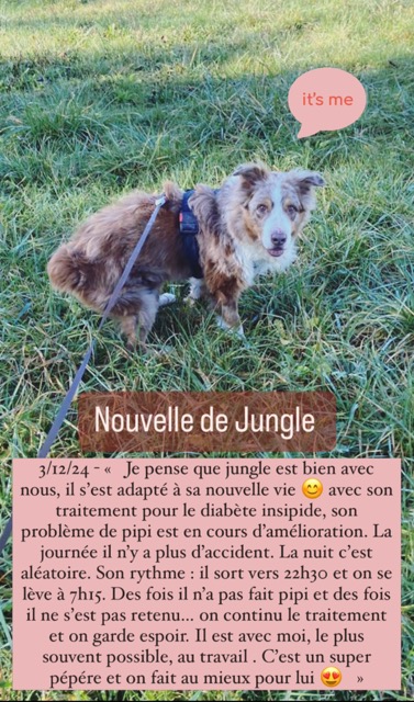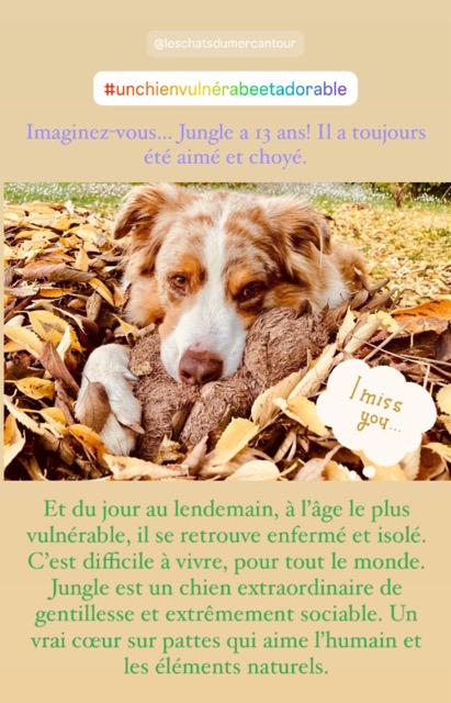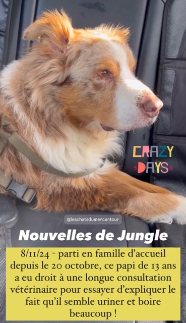 Jungle se retrouve dans l’URGENCE, nous lui cherchons une famille d’accueil ou une famille d’adoption, pour le sortir de sa solitude.
