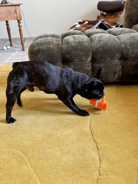 KENZO est un chien de type Bouledogue Français, non lof, couleur bringé.