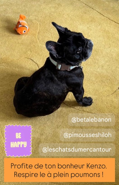 KENZO est un amour de bouli, hyper affectueux et proche de l’homme. Il a un grand besoin de construire un lien fort avec son humain.
