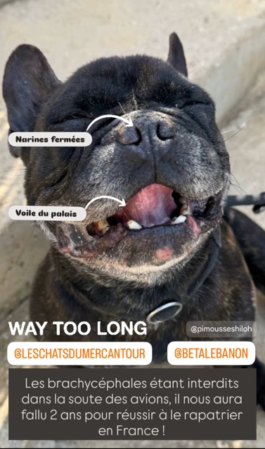 Merci de bien se renseigner sur les problèmes et besoins de brachycéphales. Ils souffrent la chaleur et leur santé physique nécessite d’être préservée.