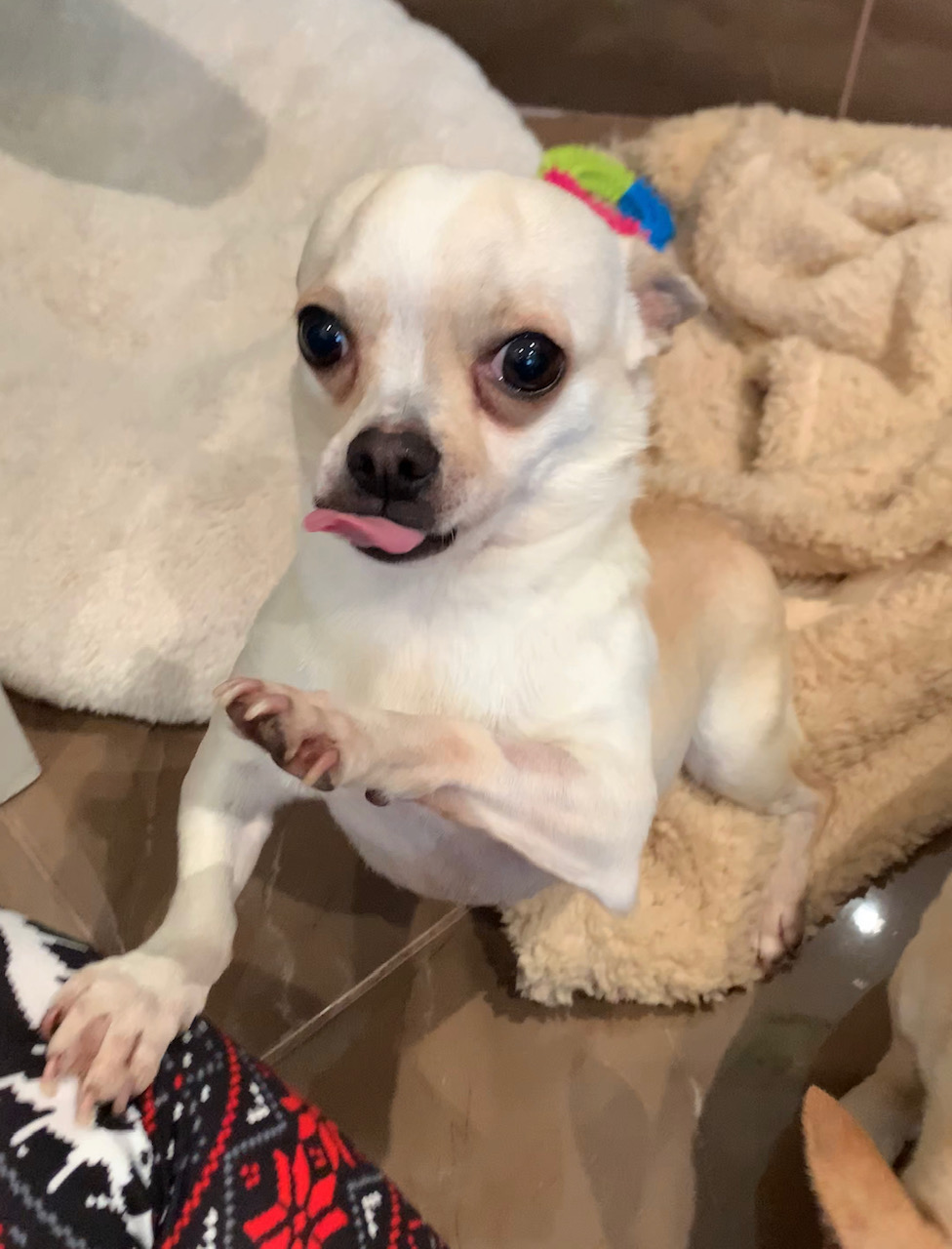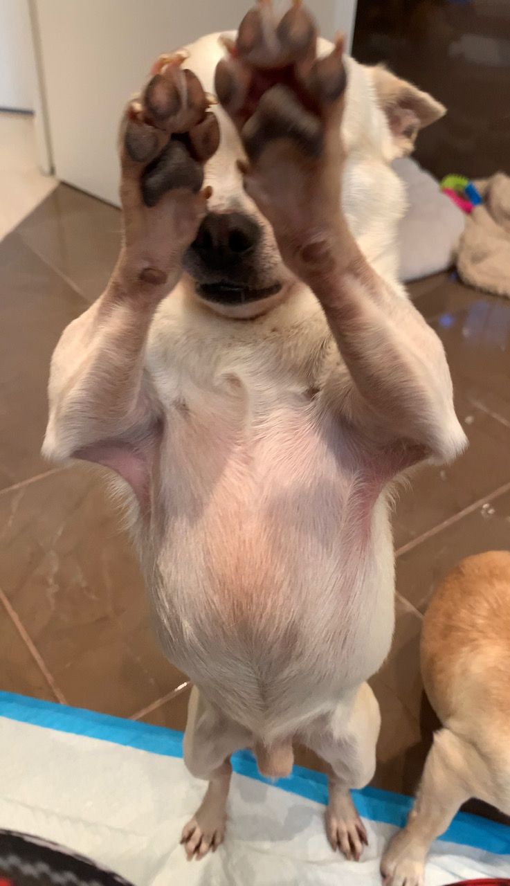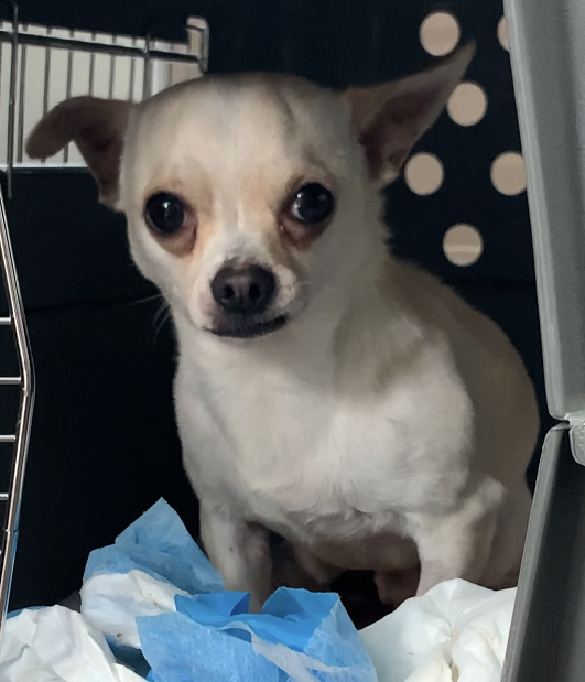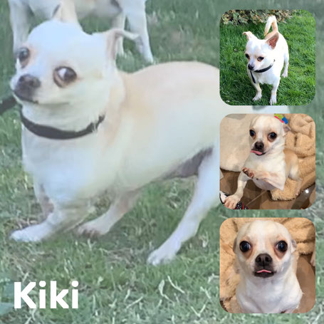 KIKI est un chien de type chihuahua, non lof, couleur beige. Mâle castré, vacciné (a besoin d’un rappel) et identifiés 250268501877301. Traité pour parasites internes et externes.