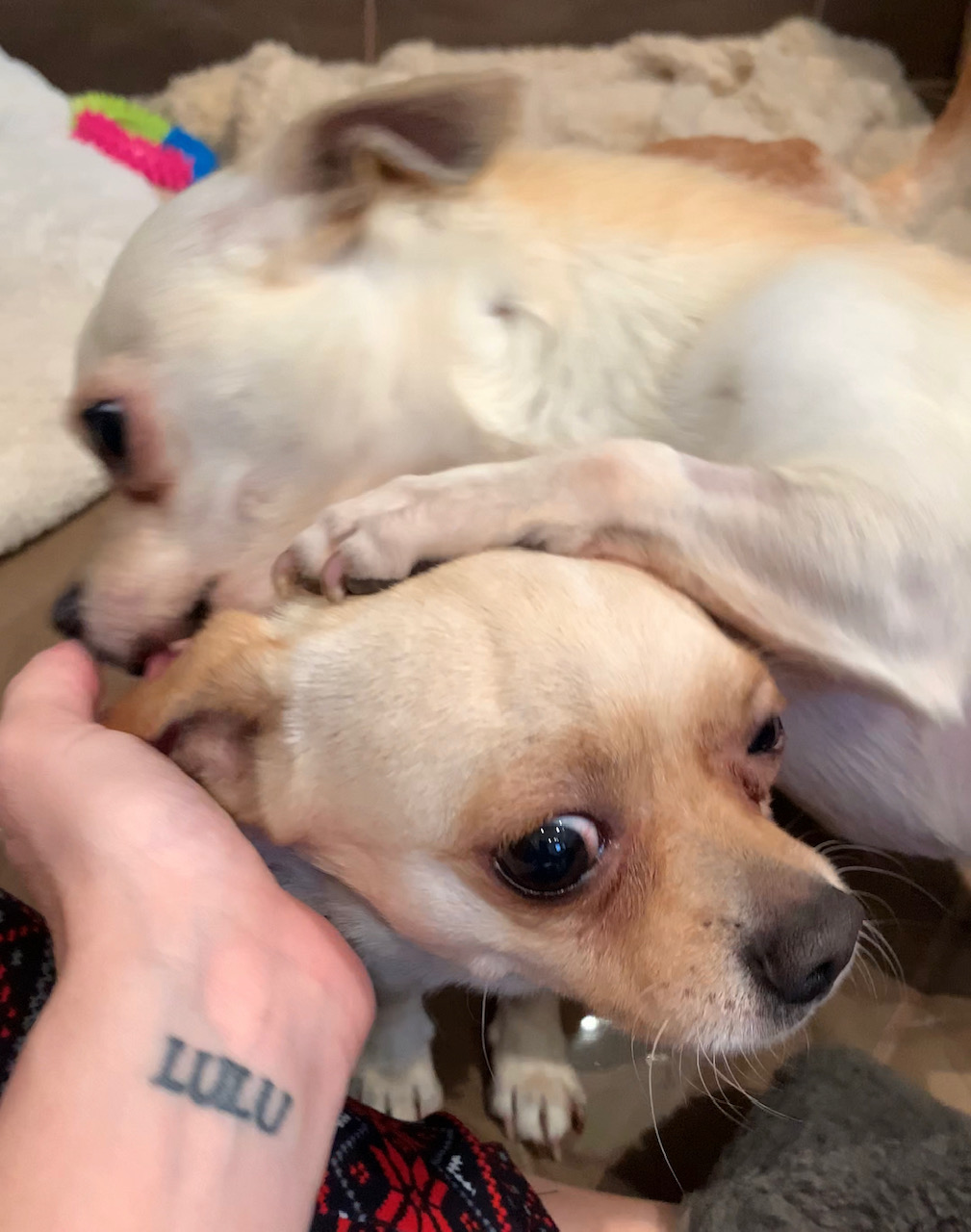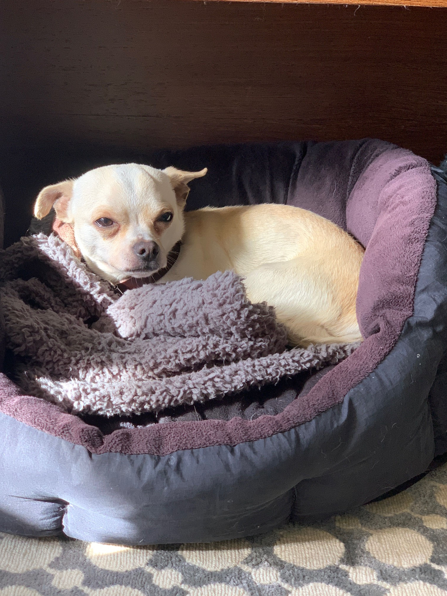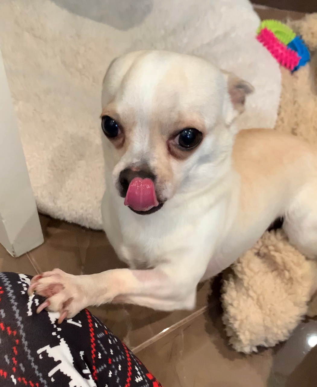 KIKI est un chien de type chihuahua, non lof, couleur beige. Mâle castré, vacciné (a besoin d’un rappel) et identifiés 250268501877301. Traité pour parasites internes et externes.