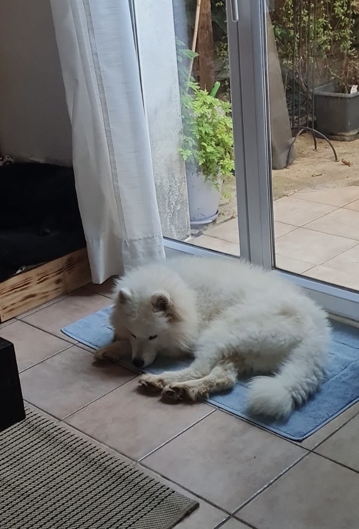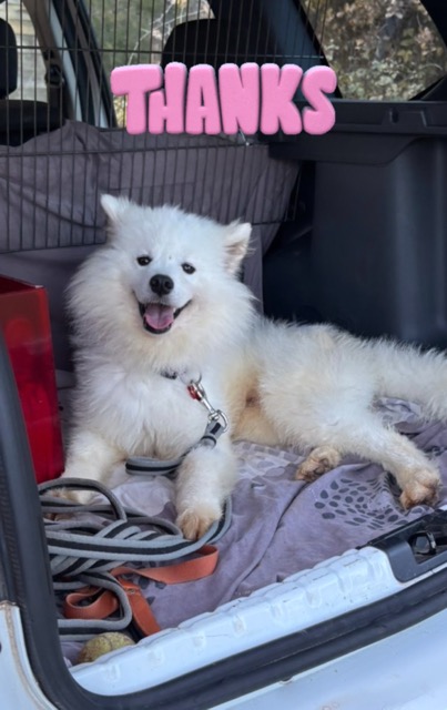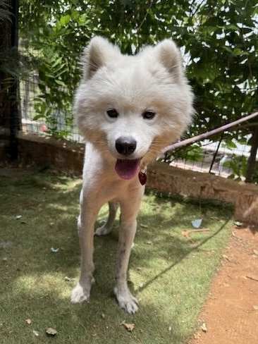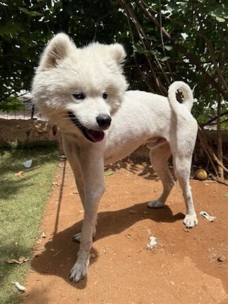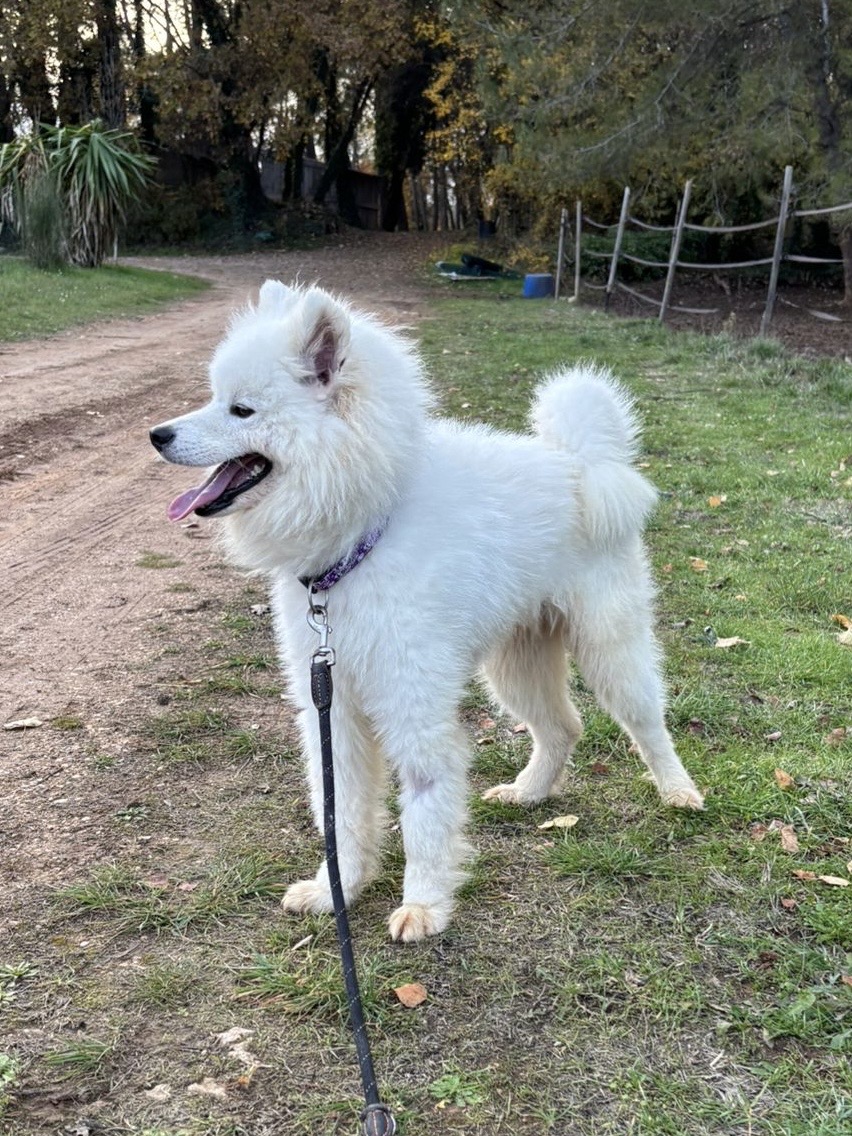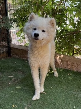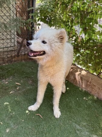 KUDA est un chien de type Samoyède, non lof, couleur blanc.