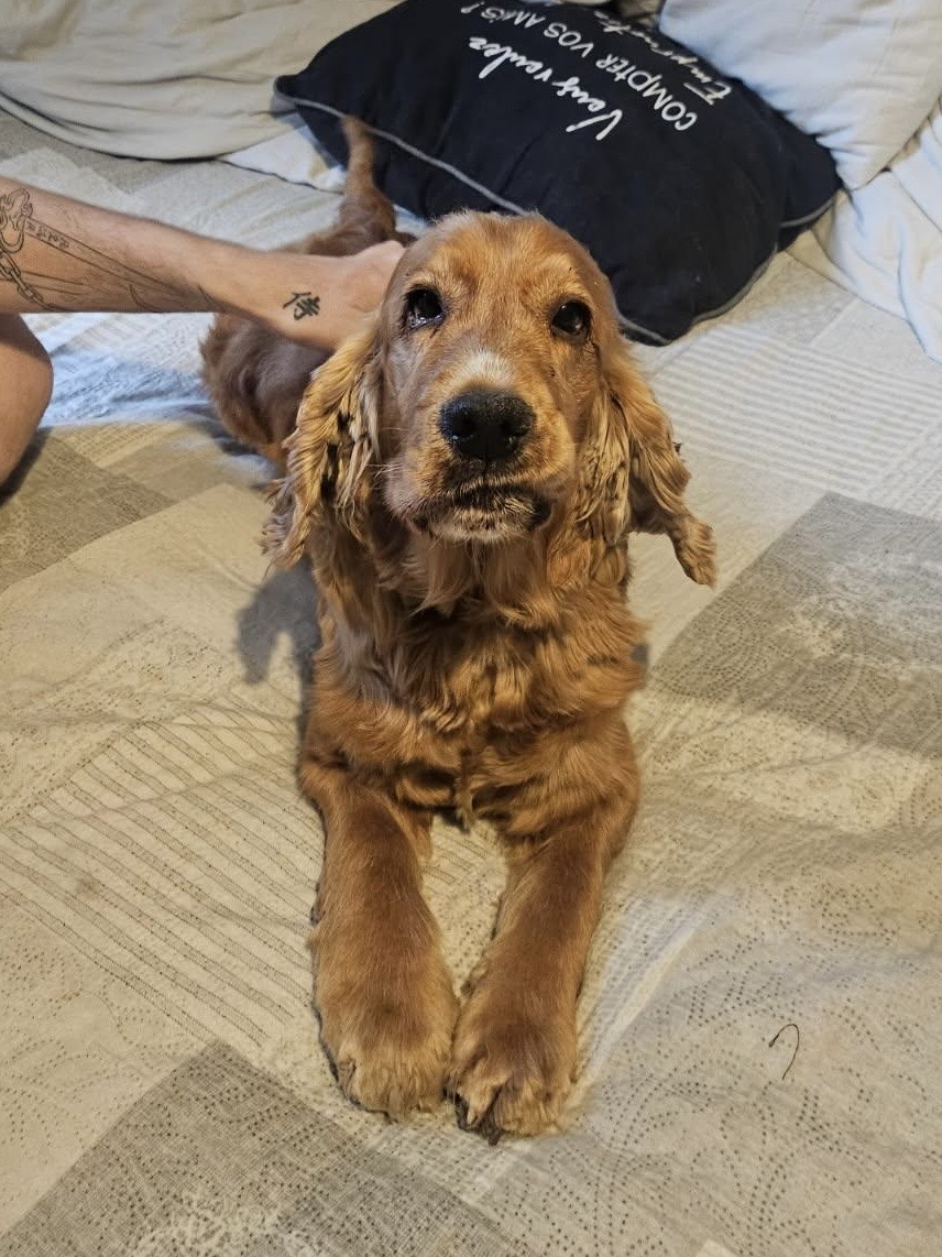 LANCASTER dit BURT est un chien de race Cocker Anglais, non lof, couleur fauve.