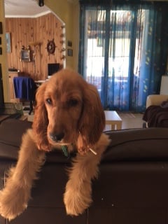 LEIA est une chienne de type Cocker Anglais Spaniel, non lof, golden, femelle qui sera stérilisée. Elle est née le 2/8/16, pucée 990000000630791, vaccinée et traitée contre les parasites.