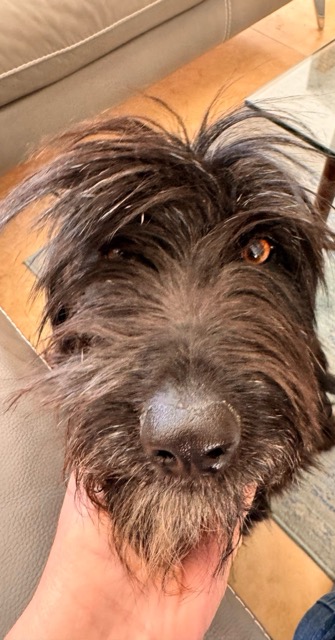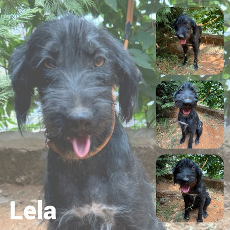 LELA est une chienne de type croisée terrier, non lof, couleur noir.