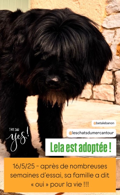 NB : merci de mûrement réfléchir à l’engagement moral et financier qu’une adoption représente (santé, factures vétérinaires, entretien, alimentation environ 1300 euros par an, absences, vacances ou autres = pension, accessoires quotidiens, éducation, etc.). Merci aussi de bien vous renseigner au préalable sur les caractéristiques de la race concernée. Un chien vit en moyenne 15 ans. C’est un être sensible avec tout ce que cela implique, ce n’est pas un objet ni un être qui agit sur commande.