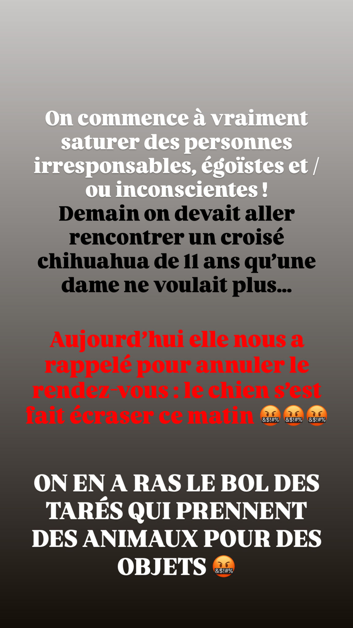 MERCI DE VOUS ABSTENIR SI VOUS N’AVEZ PAS LES MOYENS DE VOUS INVESTIR AUPRÈS D’UN COMPORTEMENTALISTE EDUCATEUR CANIN ET/OU SI VOUS N’ÊTES PAS ASSEZ DISPONIBLE AU NIVEAU DU TEMPS ET ENERGIE À ACCORDER À UN CHIEN ET SON ADAPTATION.