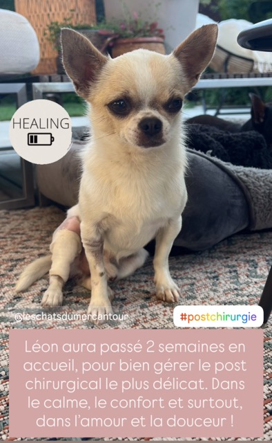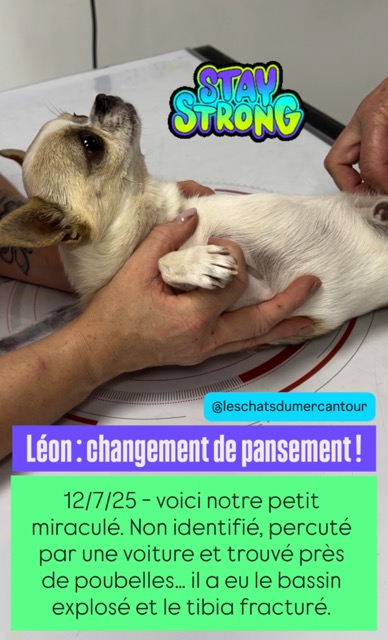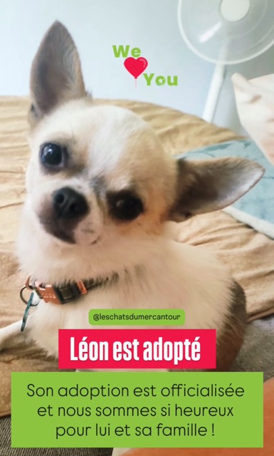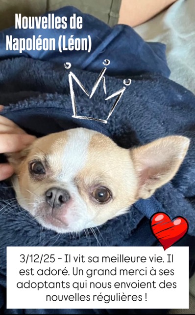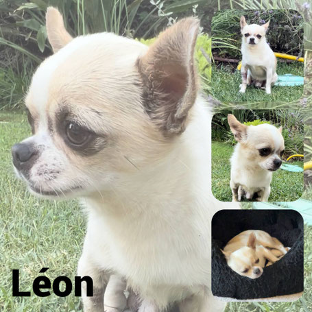 LÉON est un petit chien qui a souffert par la négligence. Il aurait pu en mourir et il le sait. Léon est une âme à soigner et choyer.