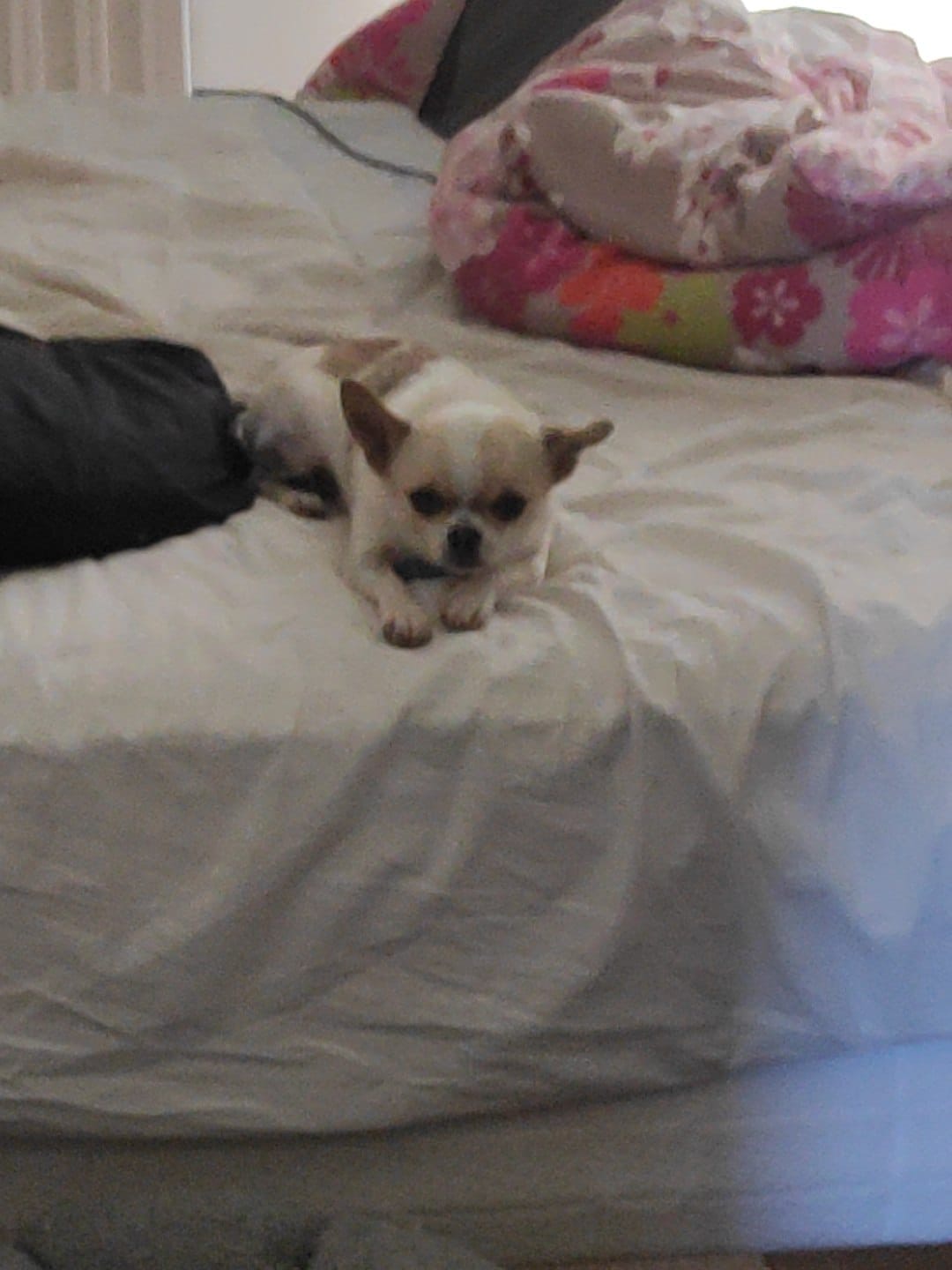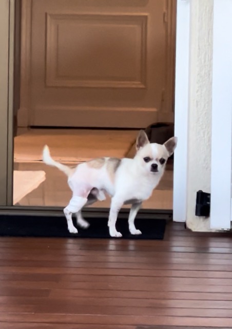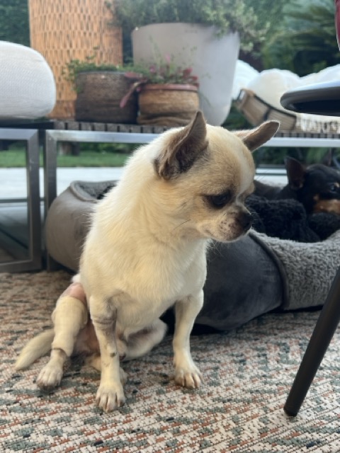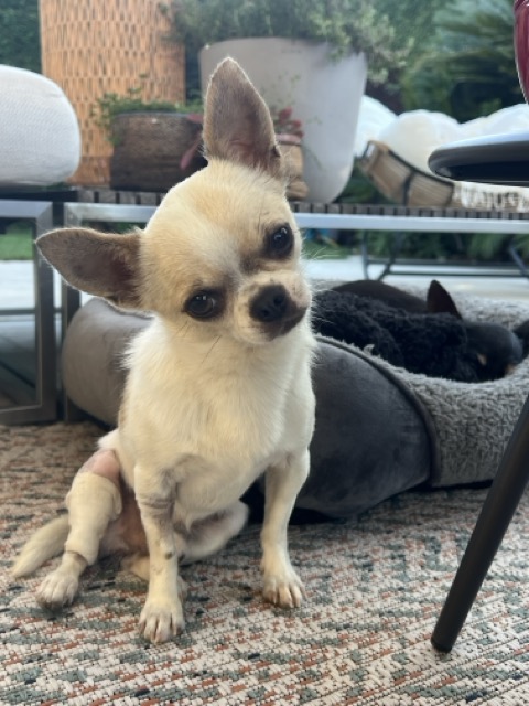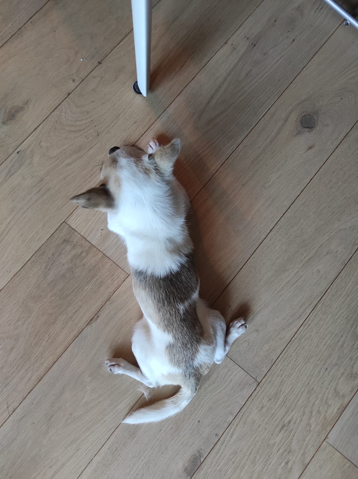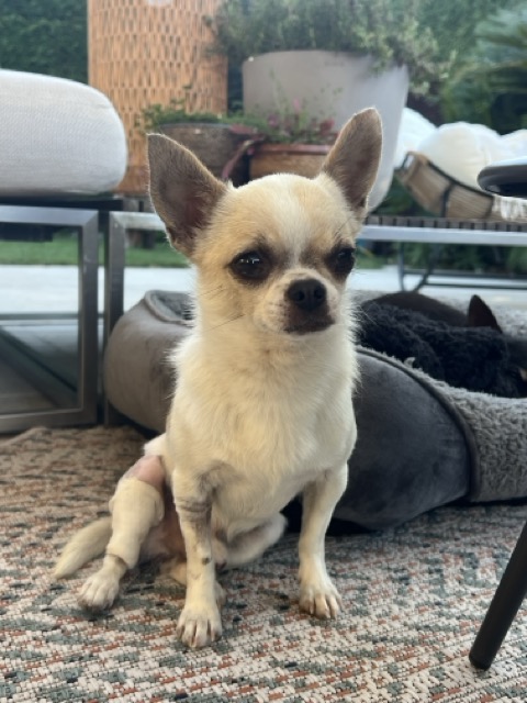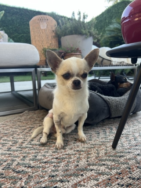 LÉON est un chien de race Chihuahua, non lof, couleur banc et beige.