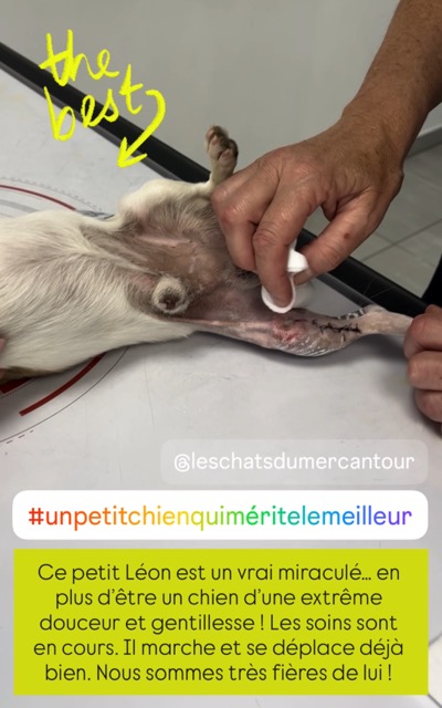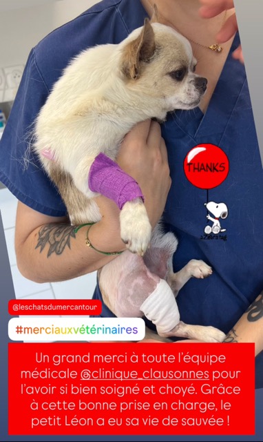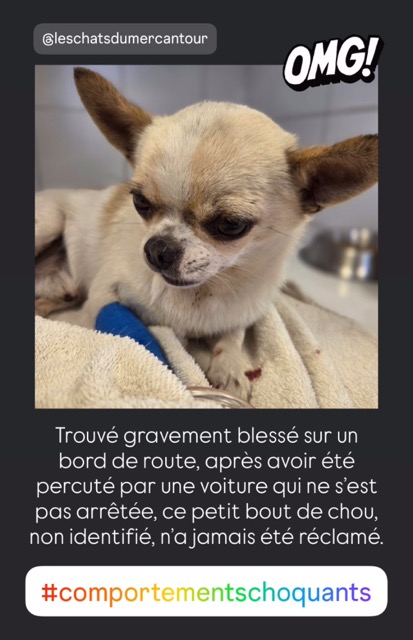 LÉON est victime de l’inconscience et de l’irresponsabilité. C’est-à-dire qu’il a été trouvé, sur la route, percuté. Non identifié, non réclamé, il fait malheureusement partie de ces pauvres chiens victimes de toutes personnes égoïstes et irresponsables (maltraitance), qui ne devraient jamais avoir de chien !