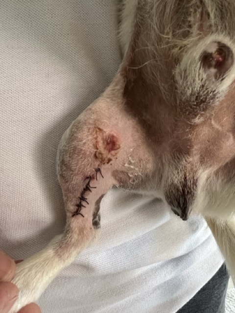 Percuté par une voiture, il a eu le bassin et le tibia fracturés. Hospitalisé, opéré, il a une broche à la cuisse, il se remet de ses blessures.