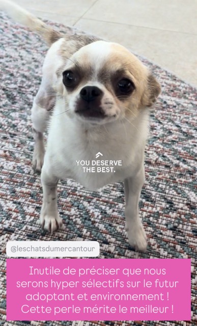 NB : merci de mûrement réfléchir à l’engagement moral et financier qu’une adoption représente (santé, factures vétérinaires, entretien, alimentation environ 1000 euros par an, absences, vacances ou autres = pension, accessoires quotidiens, éducation, etc.). Merci aussi de bien vous renseigner au préalable sur les caractéristiques de la race concernée. Un chien vit en moyenne 15 ans. C’est un être sensible avec tout ce que cela implique, ce n’est pas un objet ni un être qui agit sur commande.