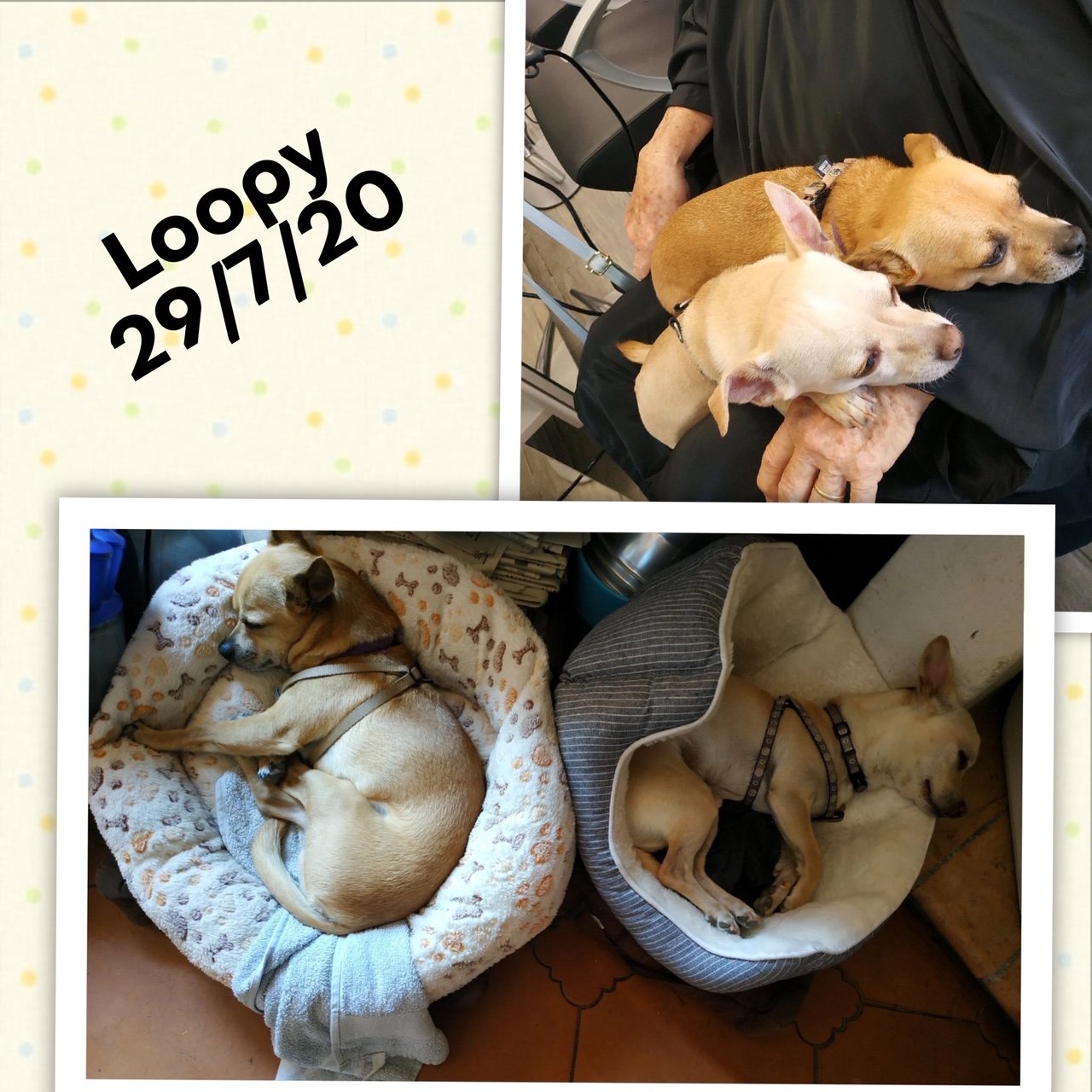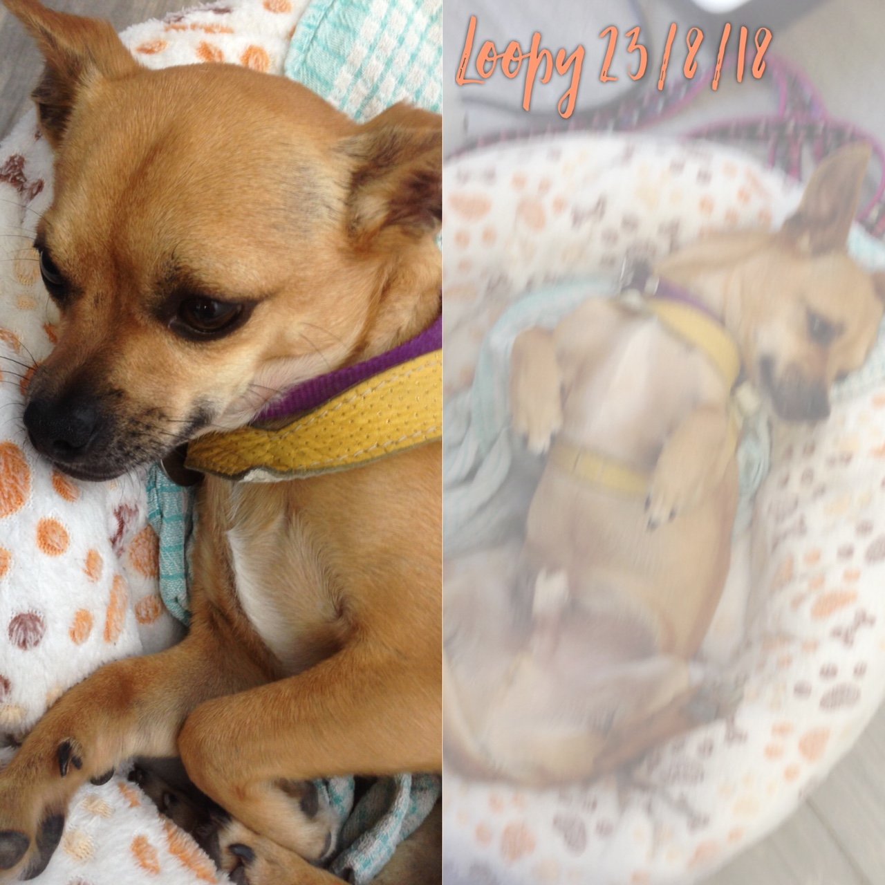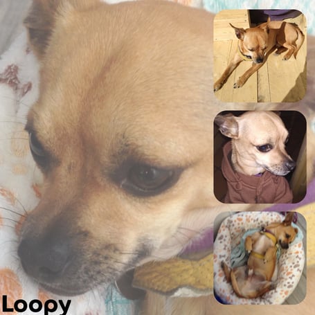 LOOPY a vécu chez un couple qui s’est laissé dépasser par le fait que leurs chihuahuas n’étaient pas stérilisés, et ils se sont retrouvés avec une quinzaine de chiens. Leurs tentatives de placer eux-mêmes les divers chiots chez des familles via internet se sont trop souvent avérées être de mauvais placements.